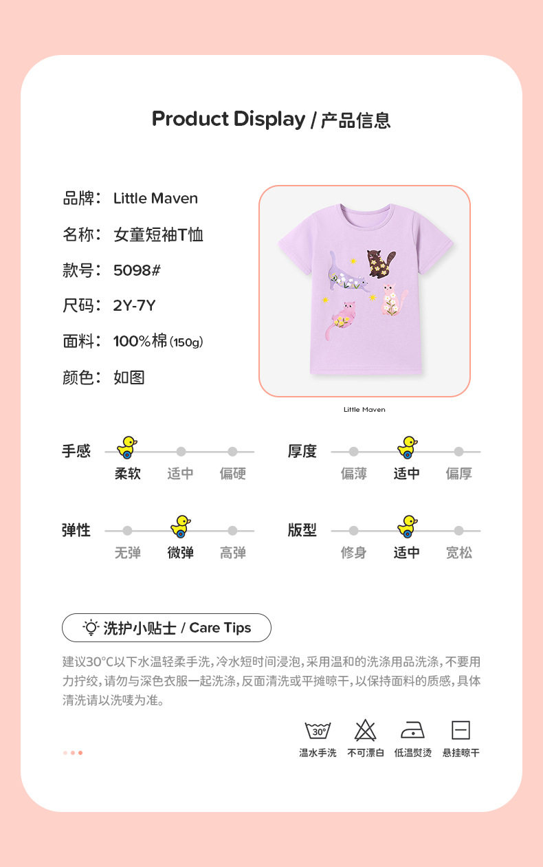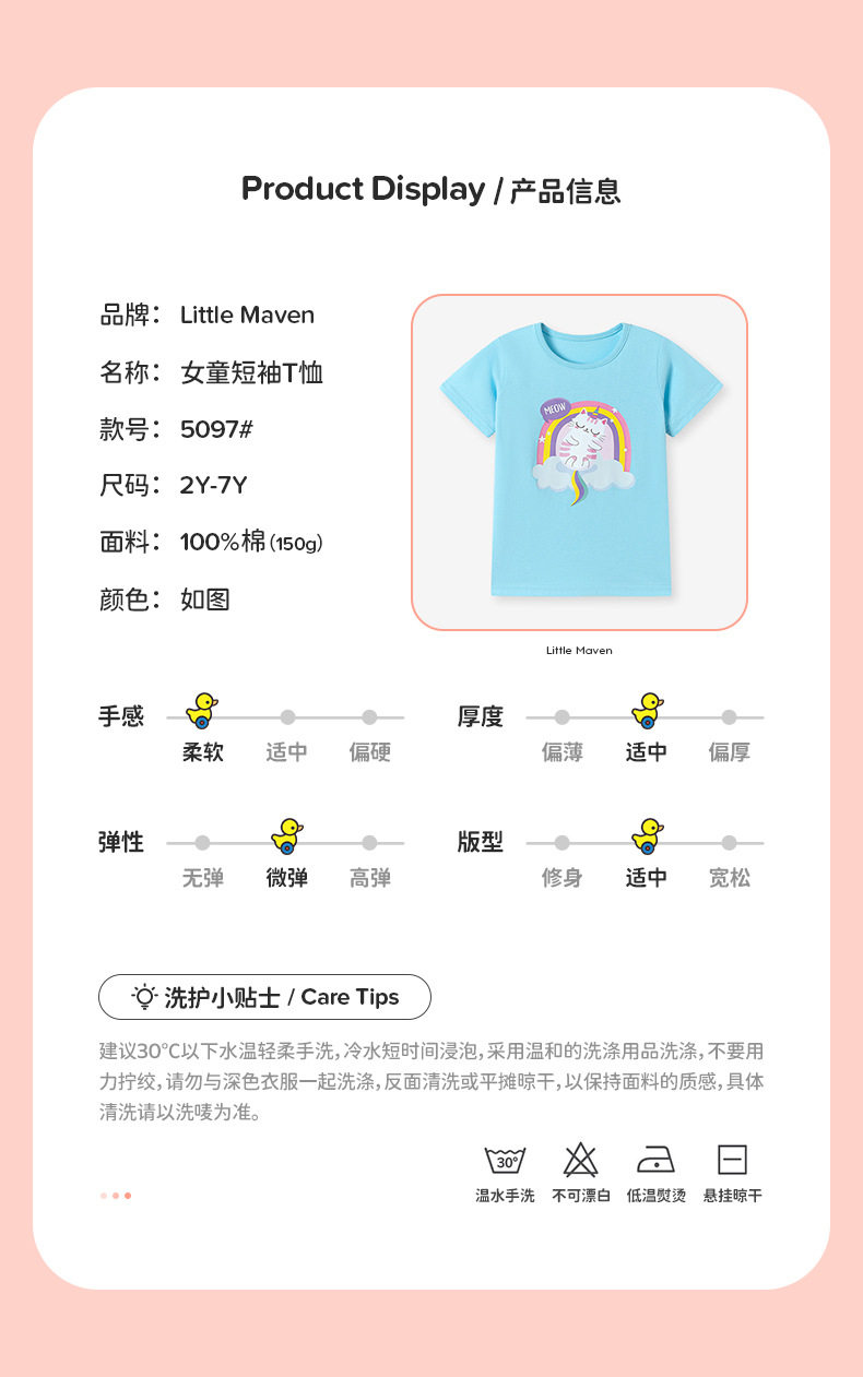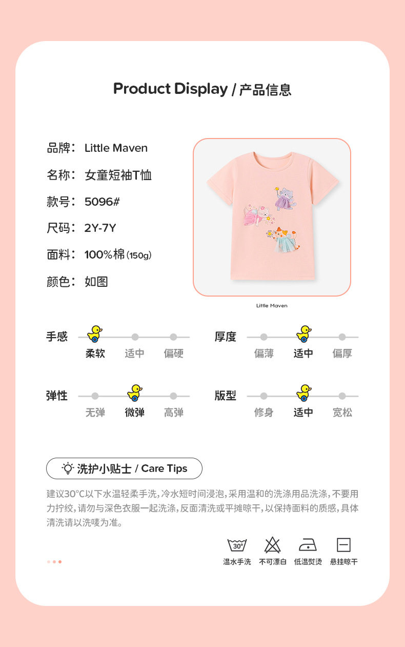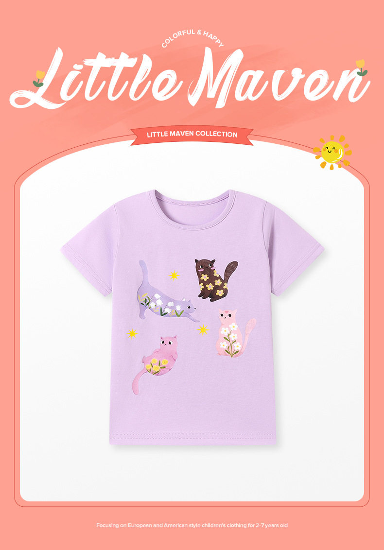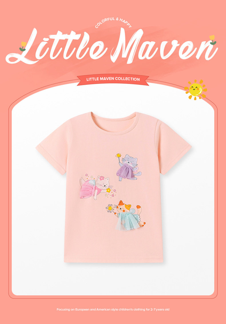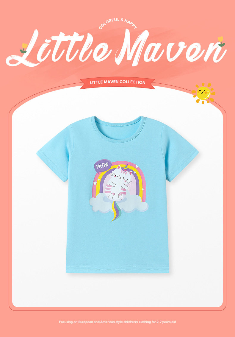 Girls' Summer Short-Sleeve T-Shirt Wholesale from Factory, Style Baby Top, Cartoon Cute Kids' Tee