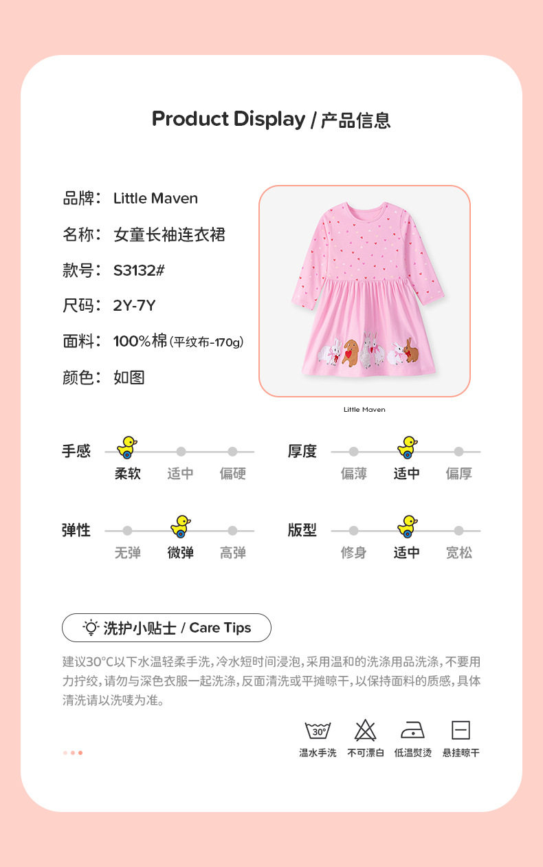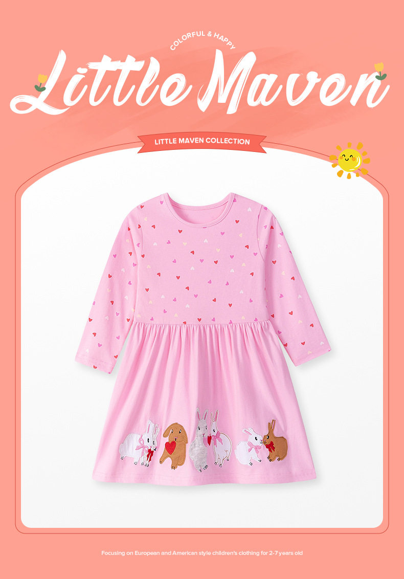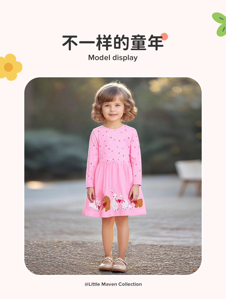 Girls' Dress, Cartoon Cotton Kids' Skirt, Autumn Long-sleeve Kids' Dress