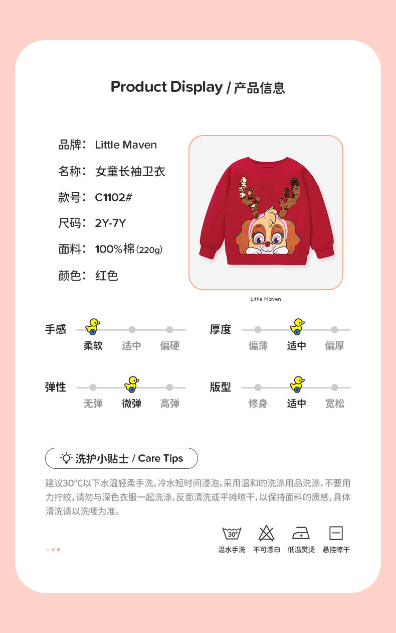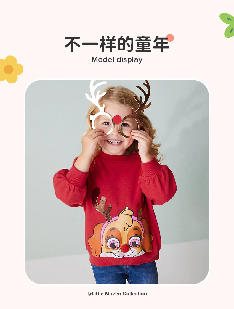 Christmas Girls' Hoodie, Cute Cartoon Deer Kids' Clothing, Autumn Cotton Kids' Hoodie