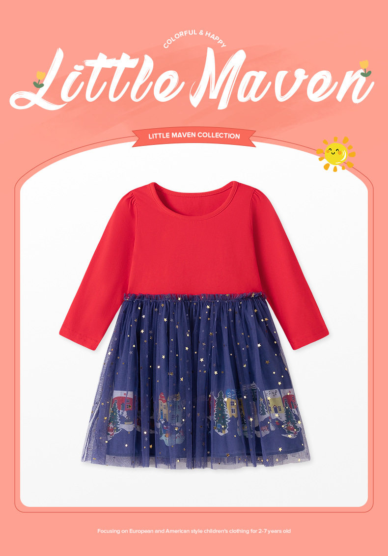 New Girls' Autumn Dress, [Style] Little Girl's Tulle Skirt, Cartoon Stylish Sweet Kids' Dress