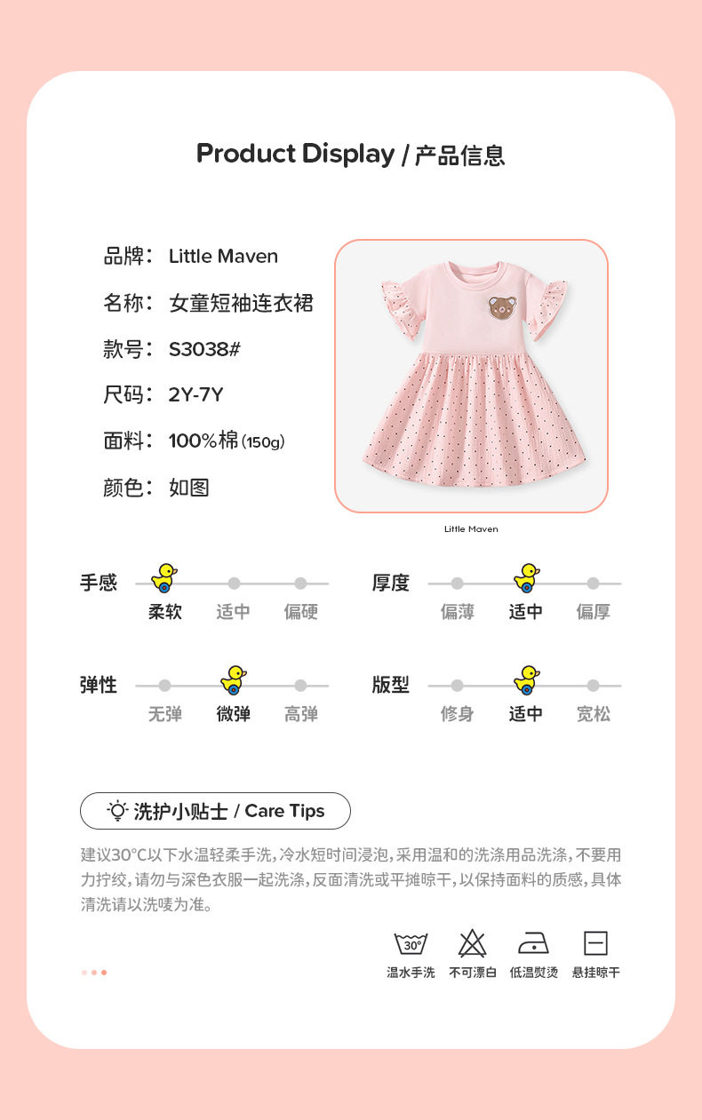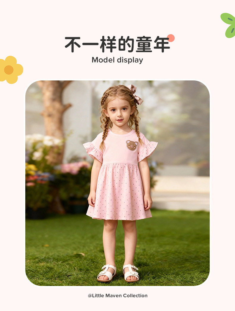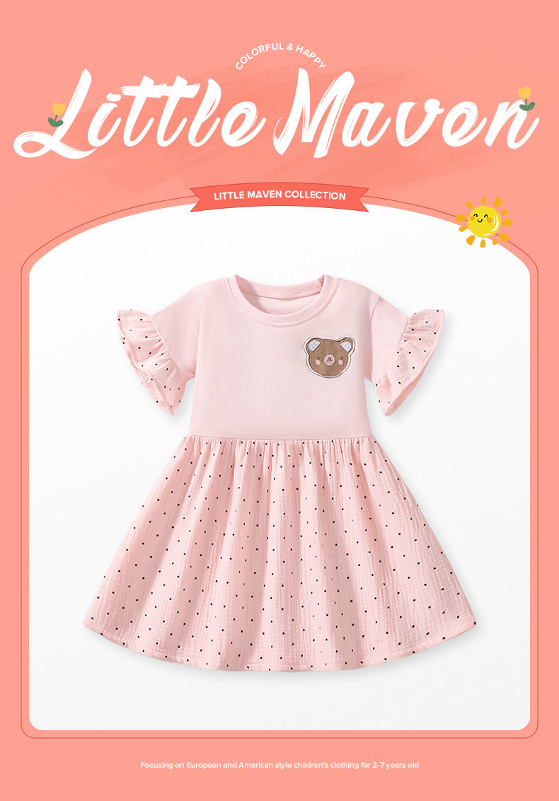 Cartoon Kids' Dress, Summer Short-sleeve Girls' Skirt, Cotton Kids' Dress