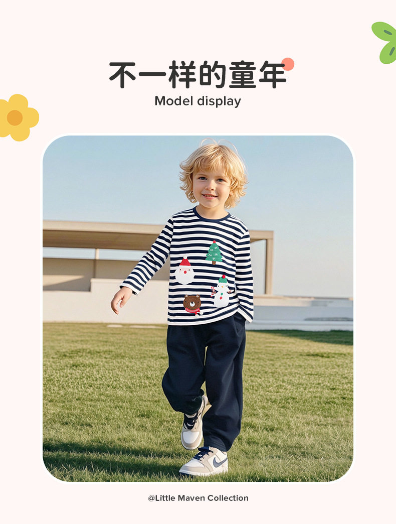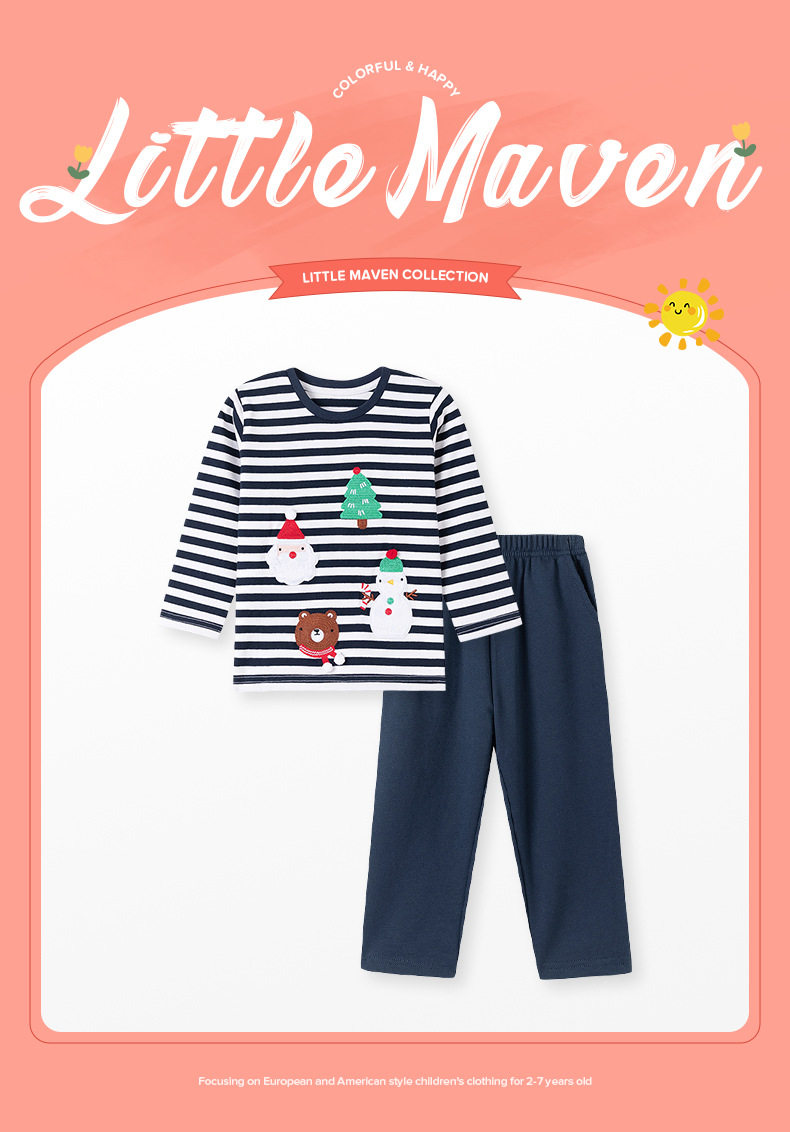 Source Factory Kids' Clothing Wholesale, New Autumn Christmas Boys' Set, [Style] Cartoon Striped Kids' Set