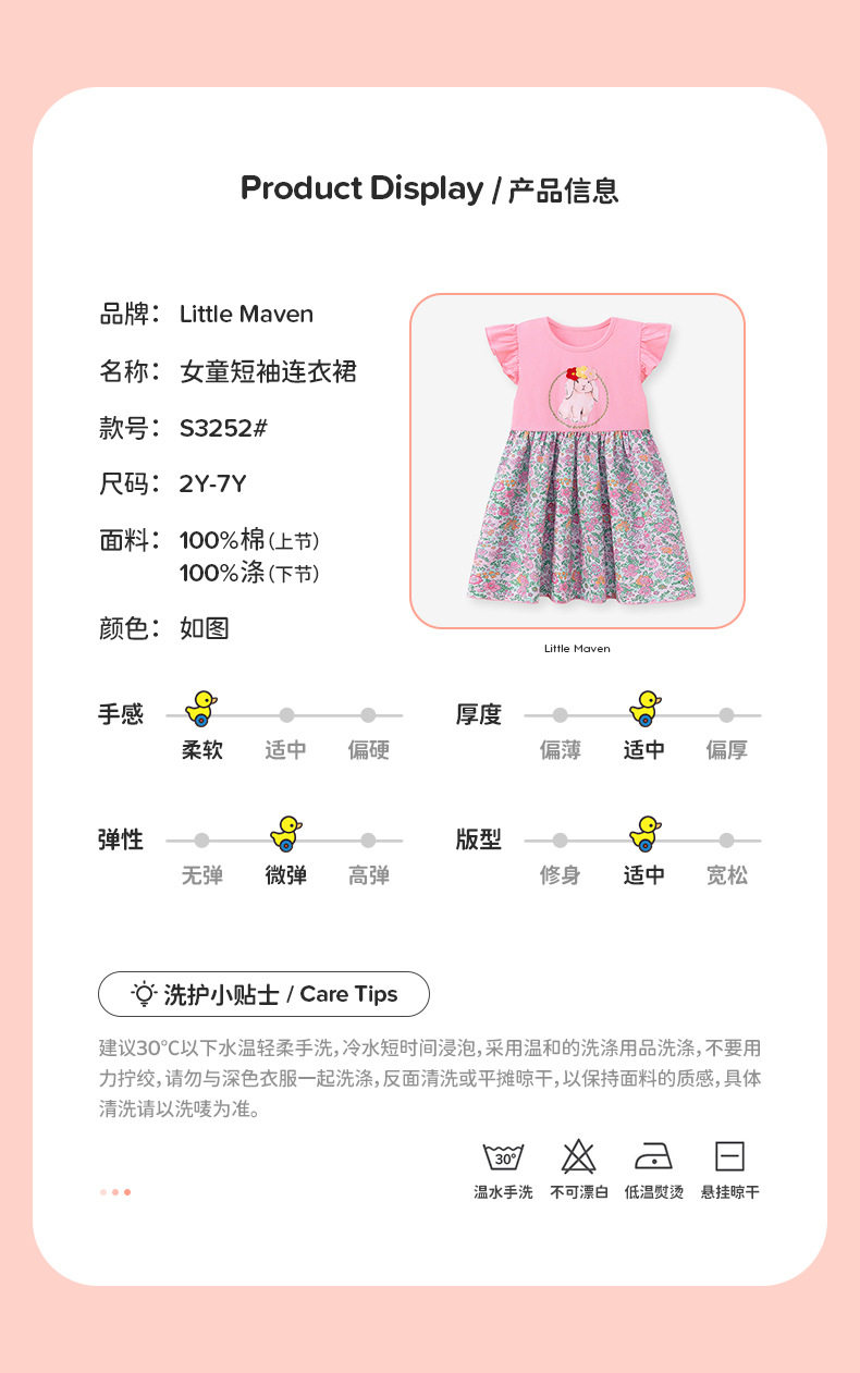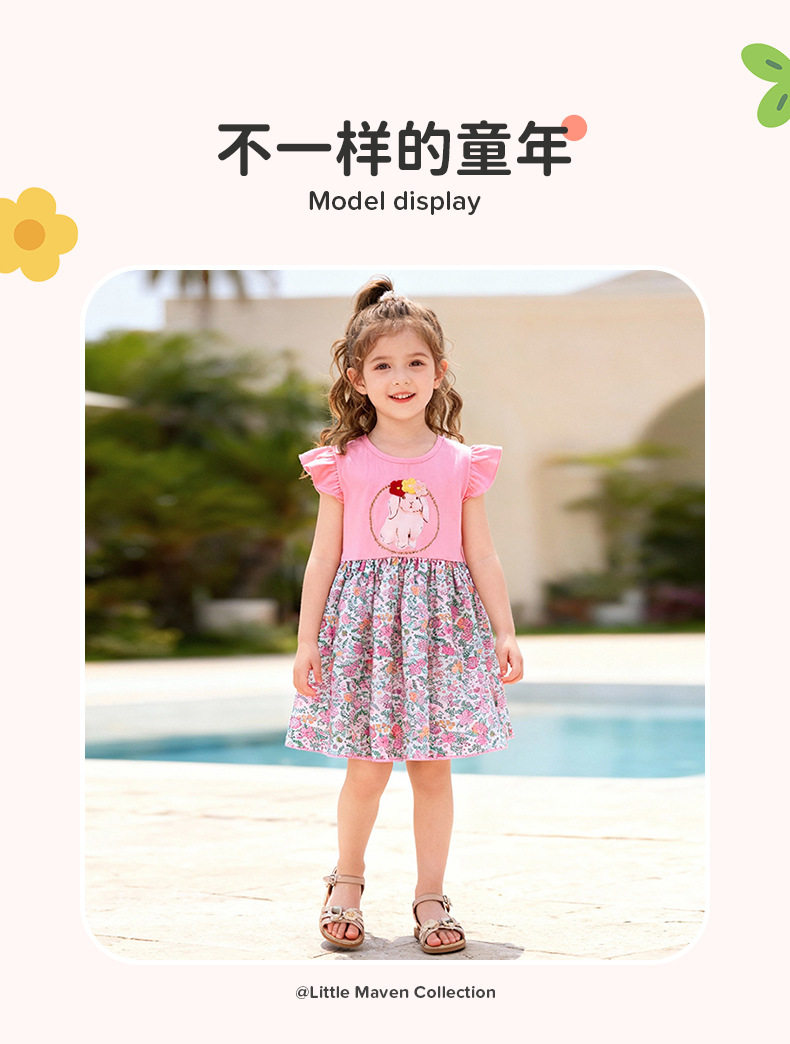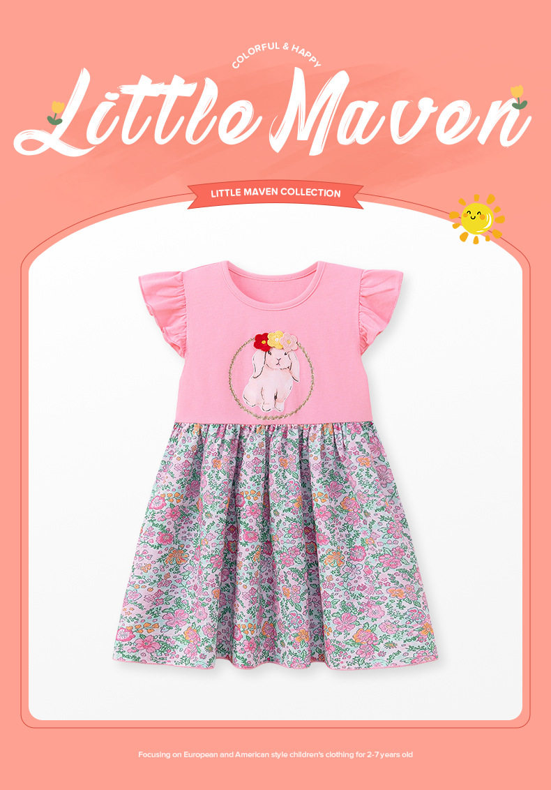 Summer Girls' Dress, Floral Cartoon Kids' Dress, Short-sleeve Breathable Kids' Skirt
