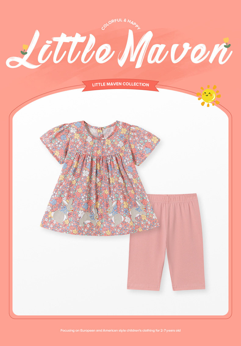 Summer Girls' Set Wholesale, Cartoon Floral Kids' Outfit, [Style] Kids' Clothing