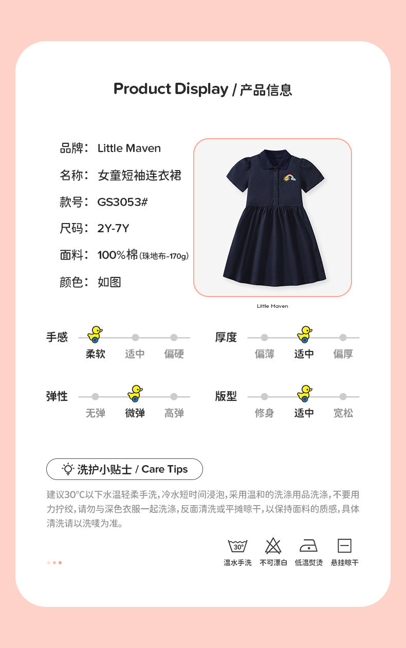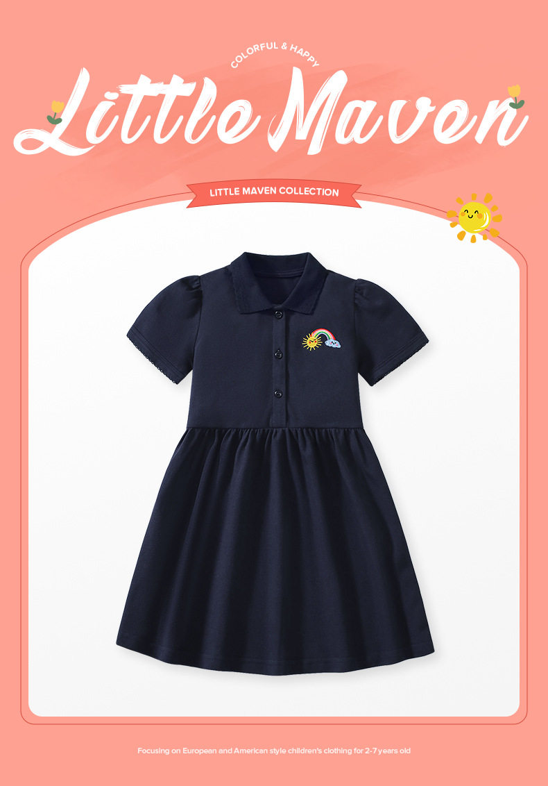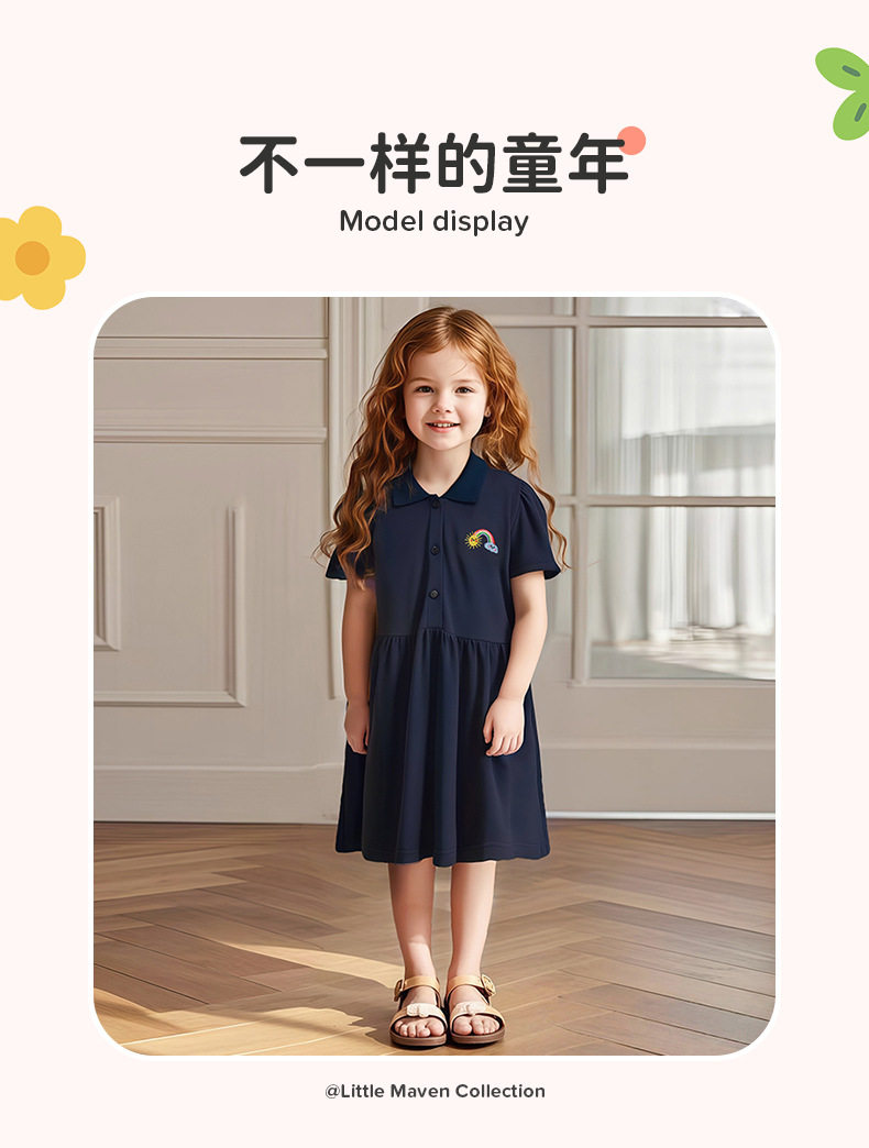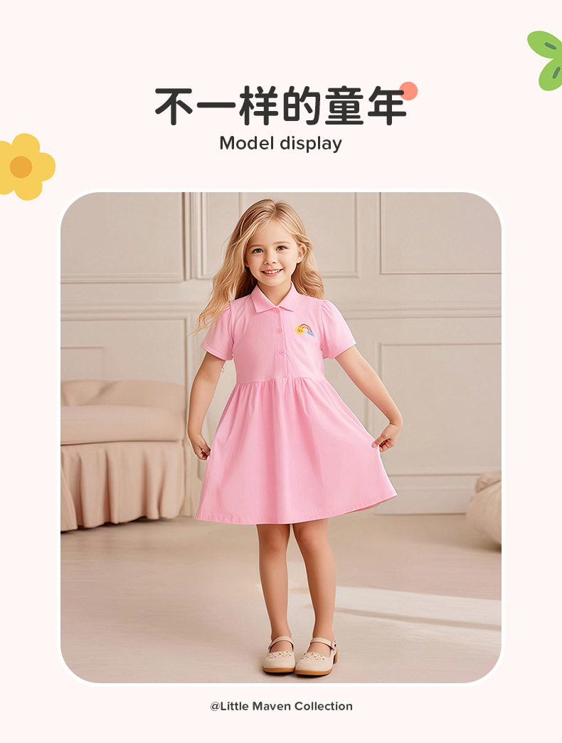 New Summer Kids' Dress, Girls' Short-sleeve Cotton Kids' Clothing, Polo Dress