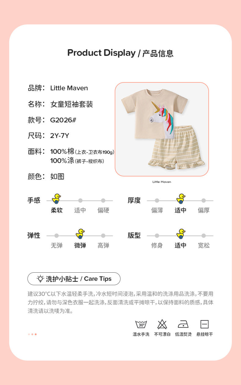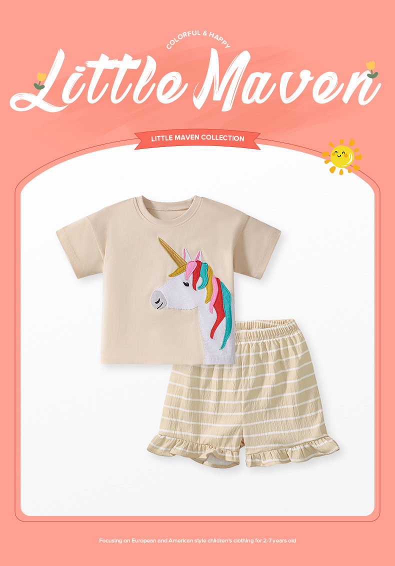 New Summer Kids' Set, Cute Short-sleeve Cartoon Girls' Outfit, Kids' Clothing Wholesale