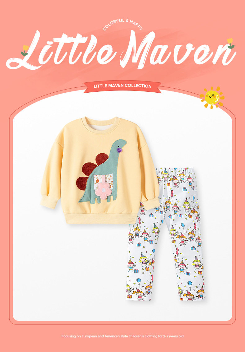 Source Factory Kids' Clothing, Autumn Fleece-lined Girls' Set, [Style] Cartoon Kids' Set