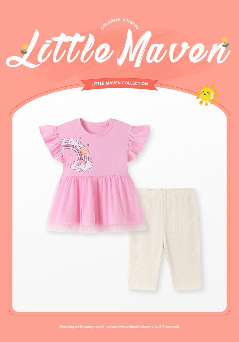 Grosir Pakaian Anak Pabrik, Set Anak Perempuan Musim Panas, Set Anak Pelangi Lucu Manis