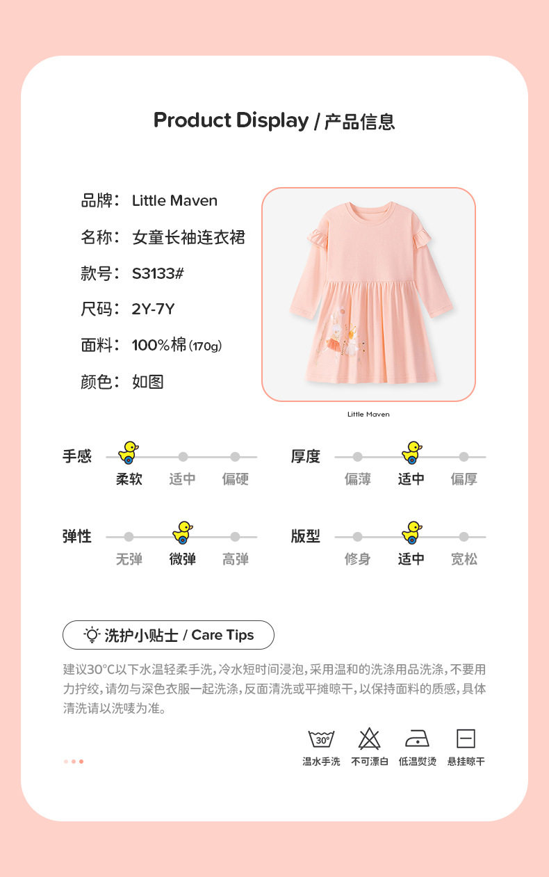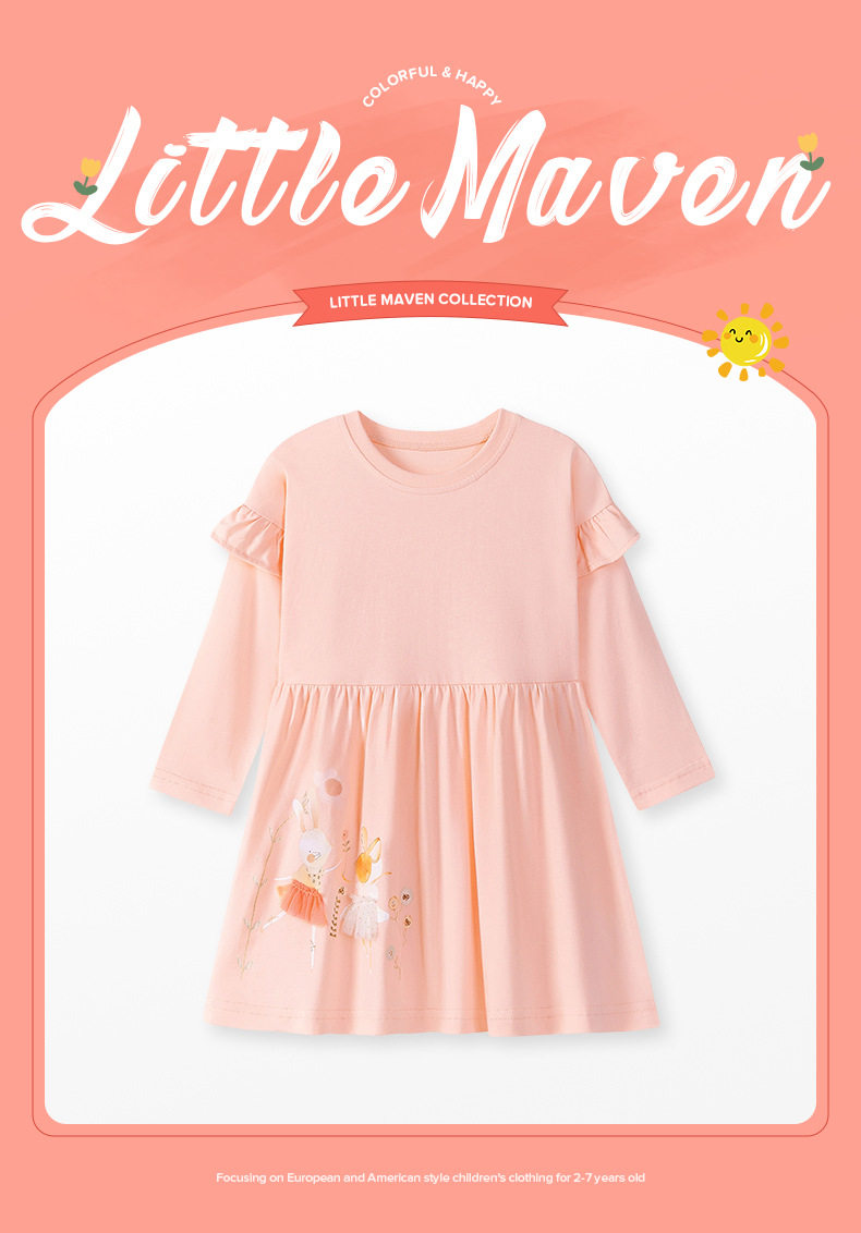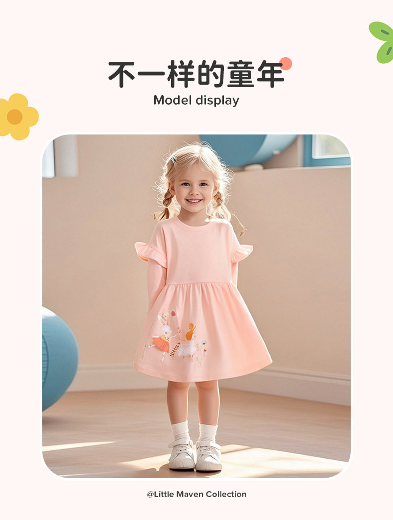 Source Factory Girls' Skirt Wholesale, Autumn Ruffle Sleeve Kids' Dress, Cartoon Heat Transfer Cotton Kids' Dress