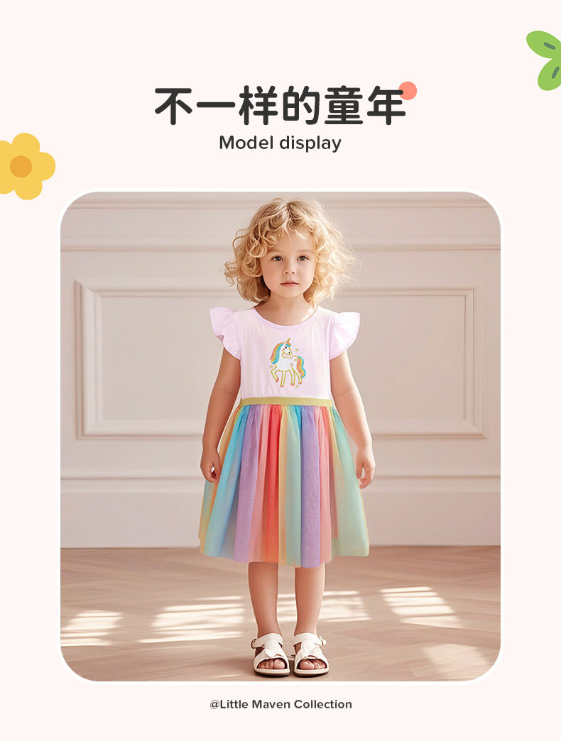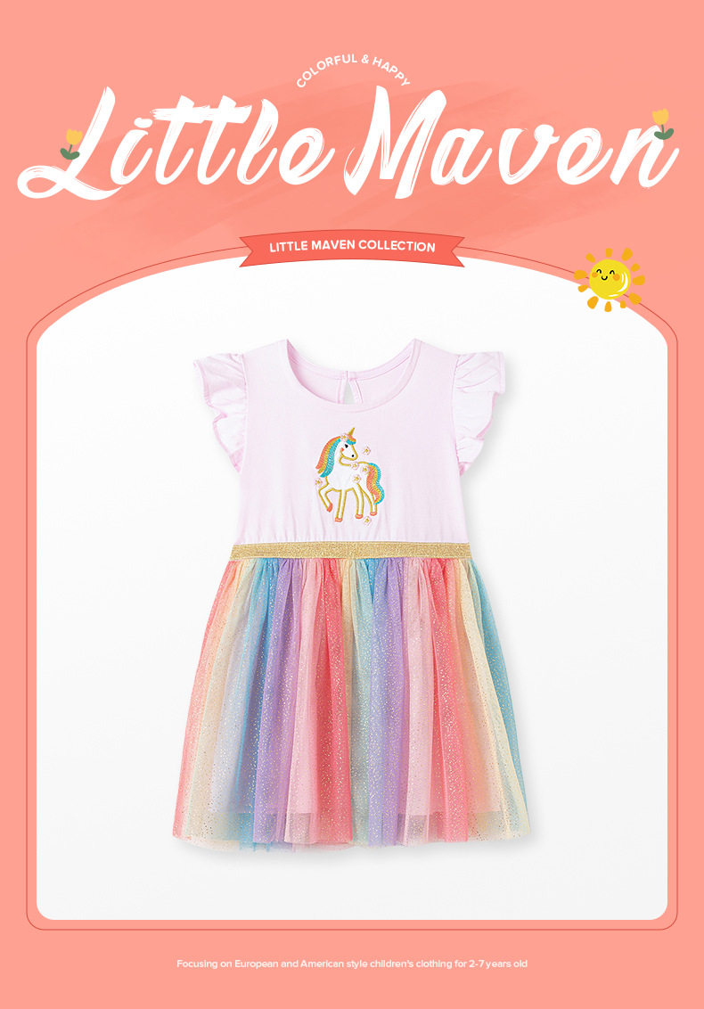 Cartoon Girls' Tulle Skirt, Summer Short-sleeve Dress, Cotton Applique Kids' Dress