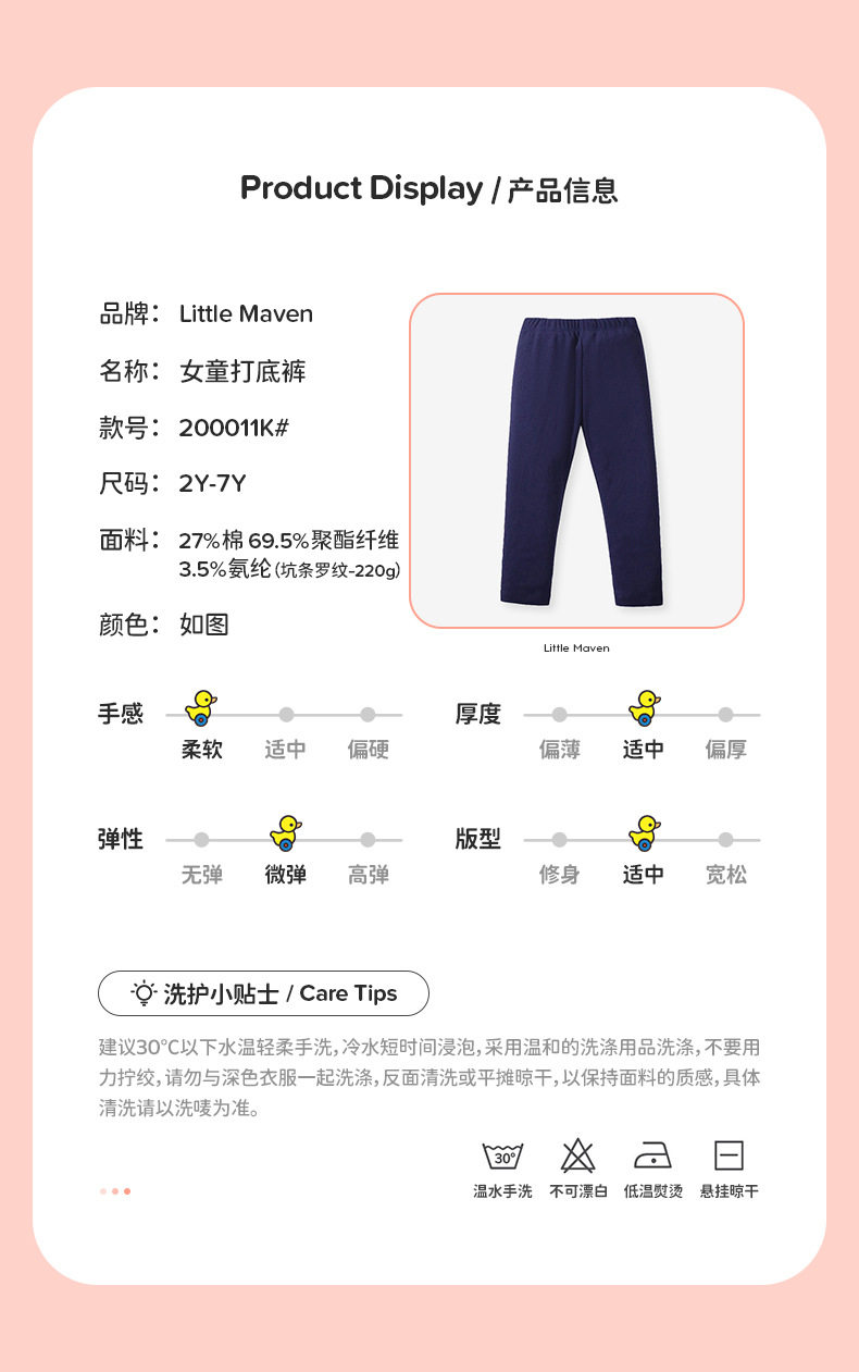 Autumn Girls' Cotton Leggings, Toddler Kids' Pants, Long Johns Wholesale