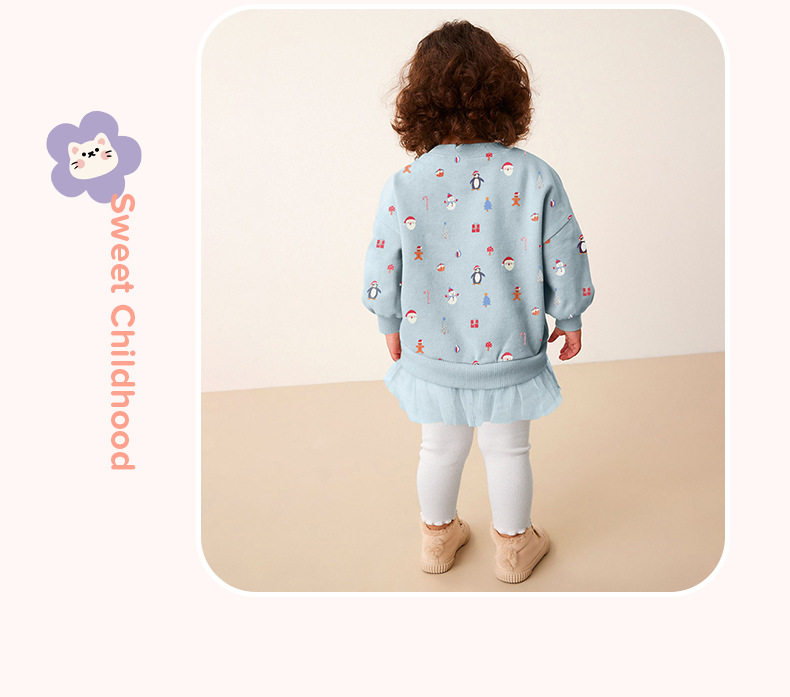 Girls' Cartoon Set, New Autumn Baby Mesh Patchwork Hoodie & Stacked Leggings Two-Piece Outfit