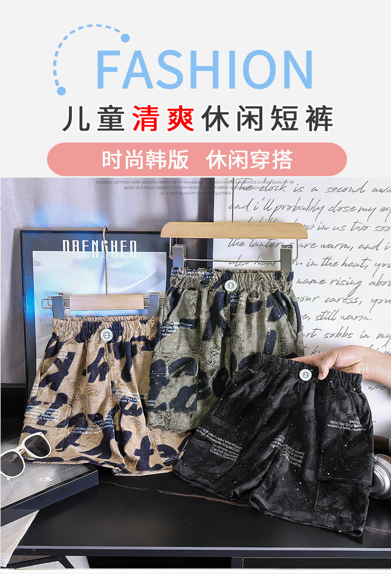 Boys' Summer Shorts, Korean Style Girls' Distressed Five-Inch Shorts, Thin Trendy Hip-Hop Kids' Shorts