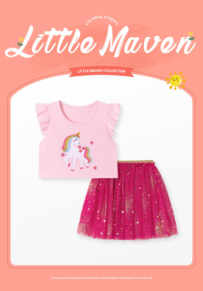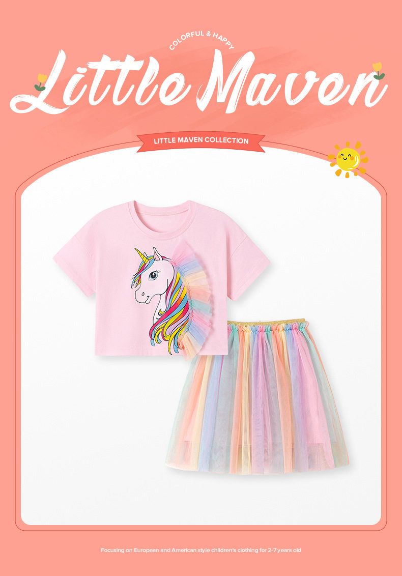 Set anak perempuan stylish musim panas, set bayi kartun lucu, set gaun tulle