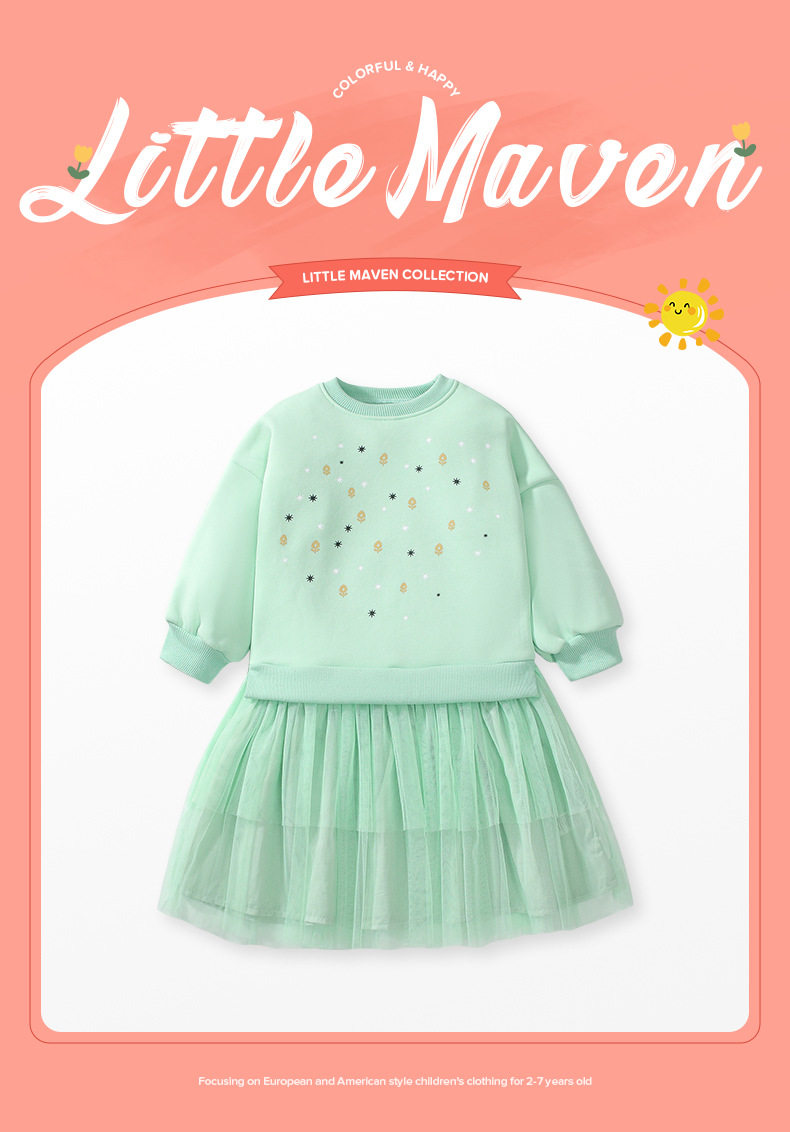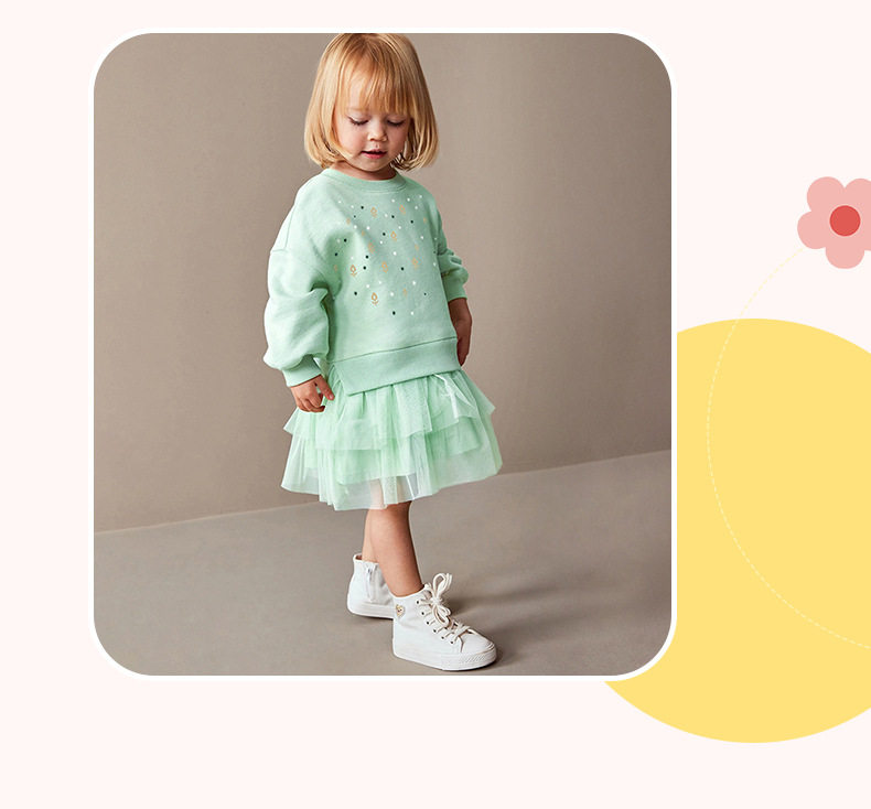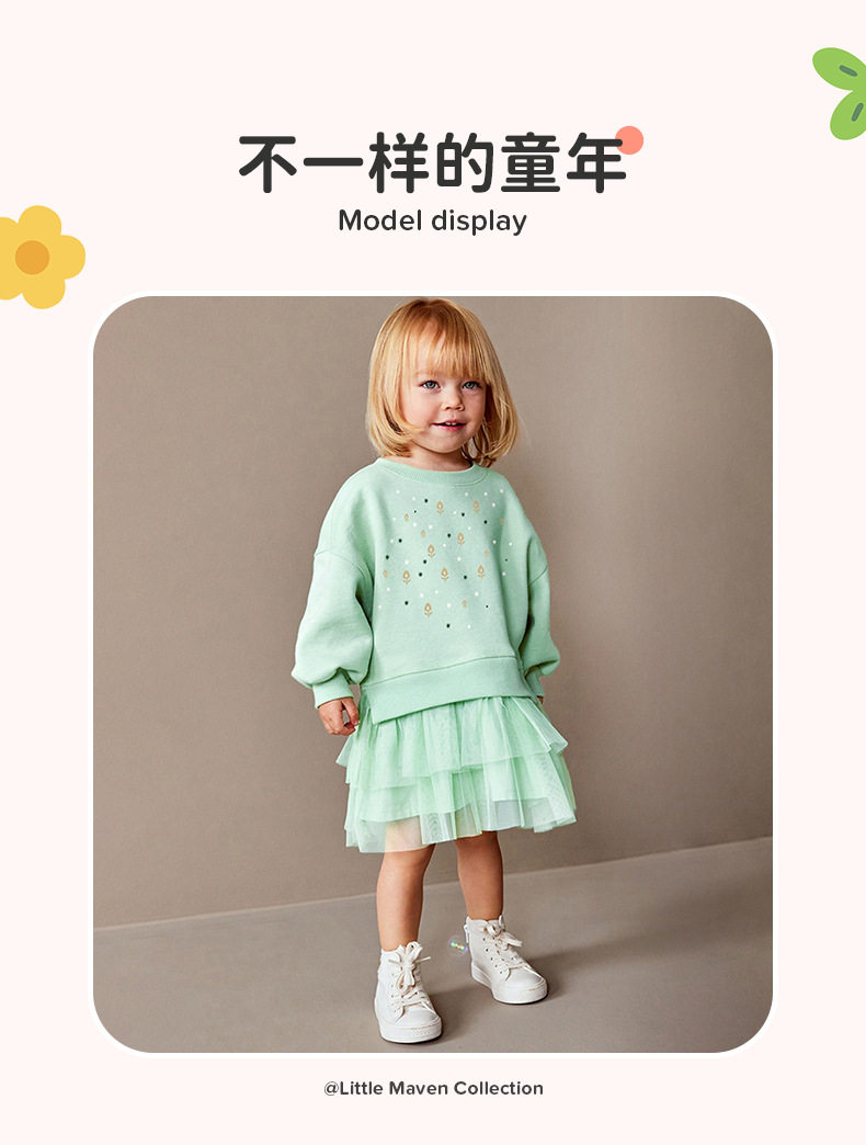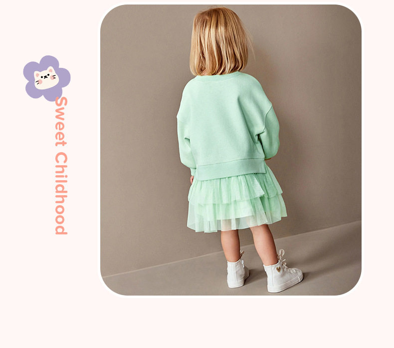 Girls' Cartoon Set, New Autumn Baby Mesh Patchwork Hoodie & Stacked Leggings Two-Piece Outfit