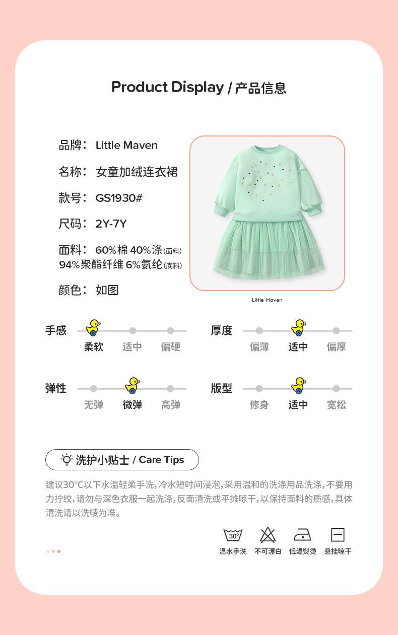 Girls' Long-sleeve Tulle Fleece-lined Autumn Dress, New Kids' Princess Dress, Cute Kids' Dress