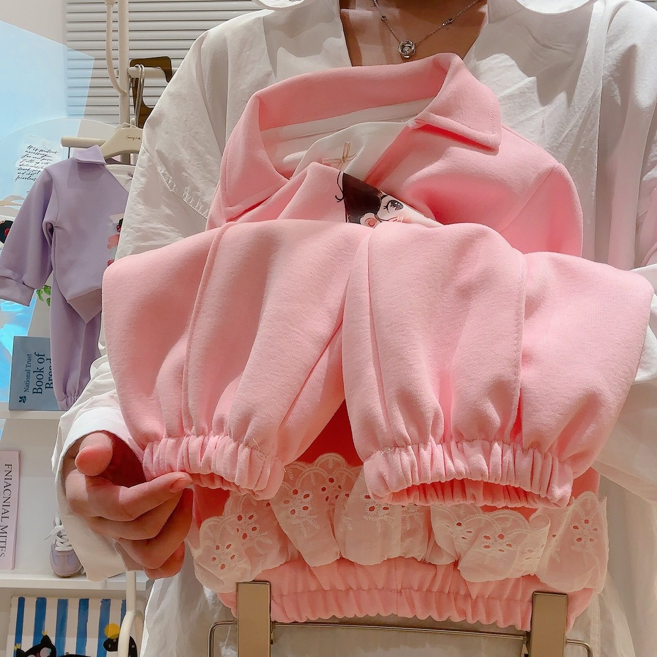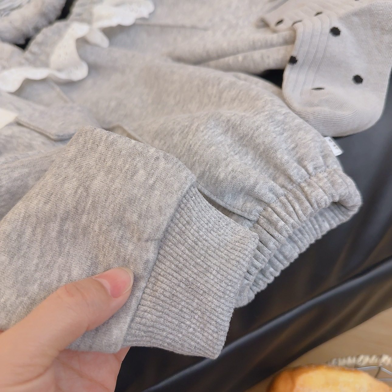 Girls' Lace Patchwork Sports Sweatpants, New Spring & Autumn High-Waist Loose Cuffed Casual Wide-Leg Pants, Matching Collared Two-Piece Set