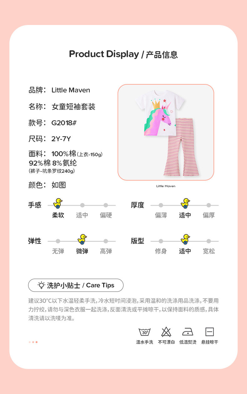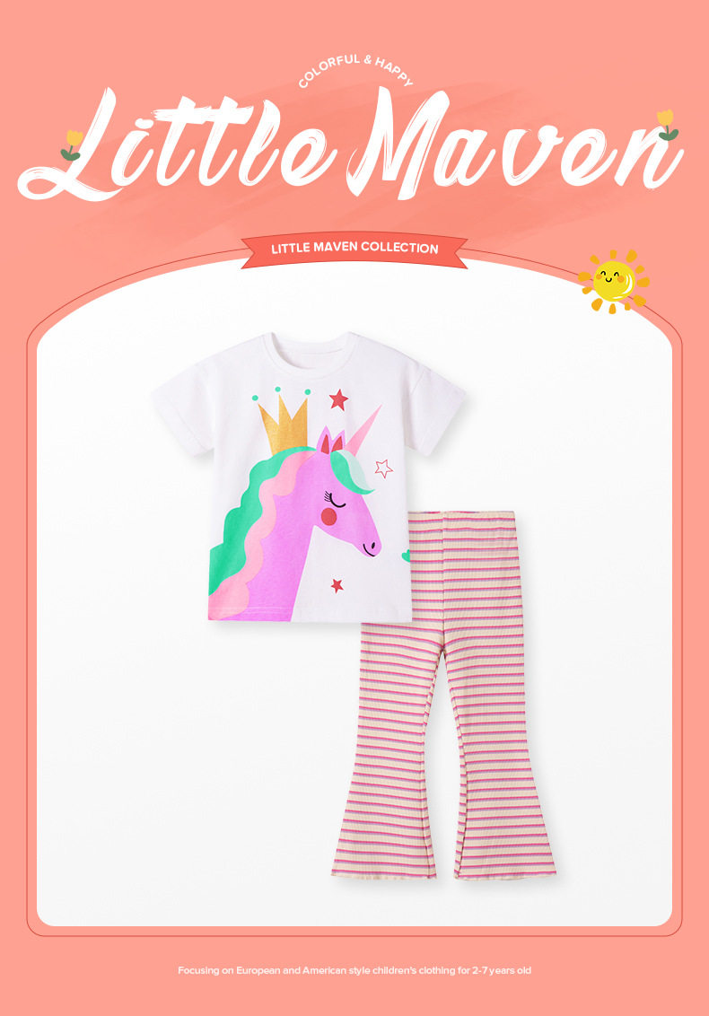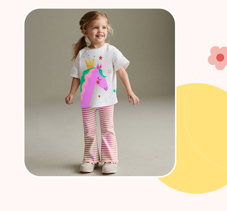 Source Factory Girls' Set, Summer Cartoon Kids' 2-piece Outfit, Girls' Set