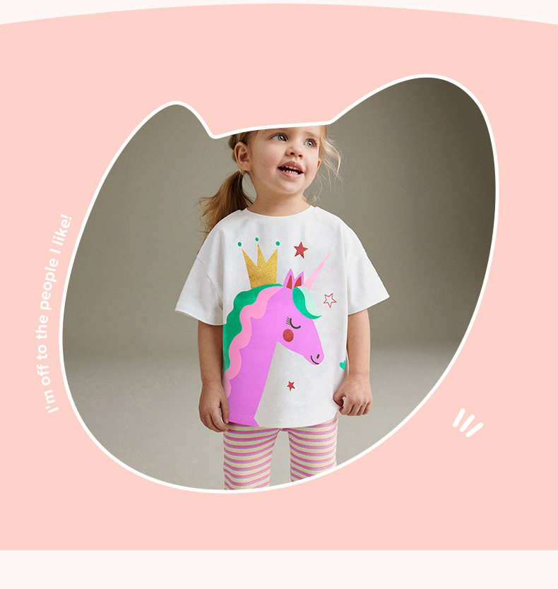 Girls' Summer Short-Sleeve T-Shirt Wholesale from Factory, Style Baby Top, Cartoon Cute Kids' Tee