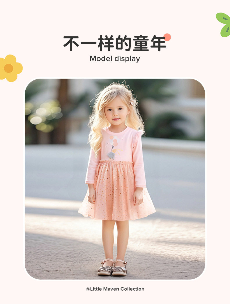 New [Style] Girls' Dress, Autumn Tulle Kids' Skirt, Cute Baby Kids' Dress