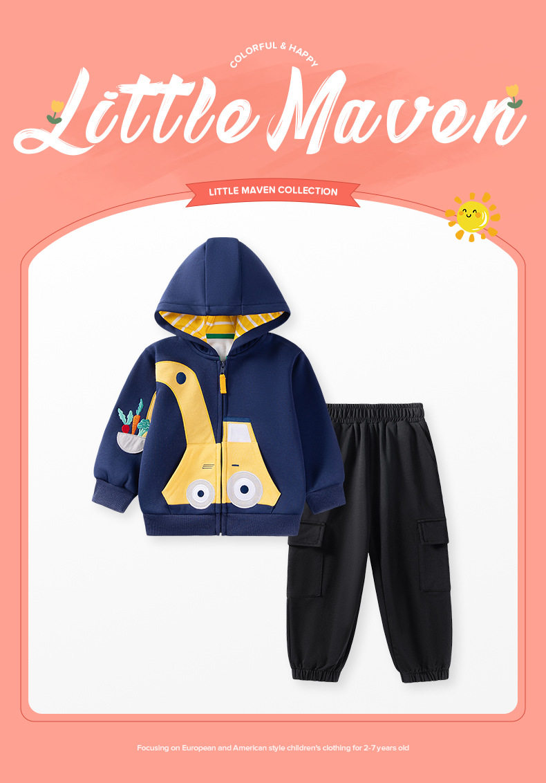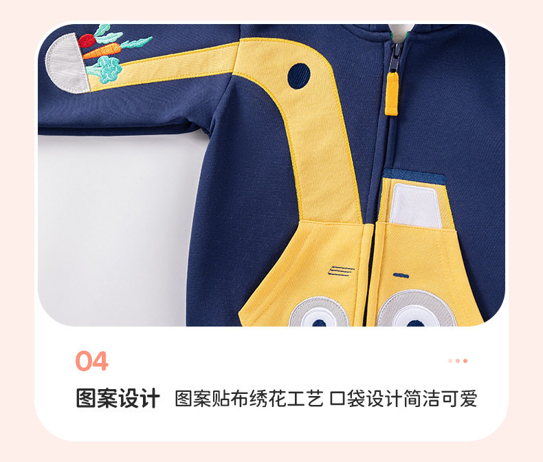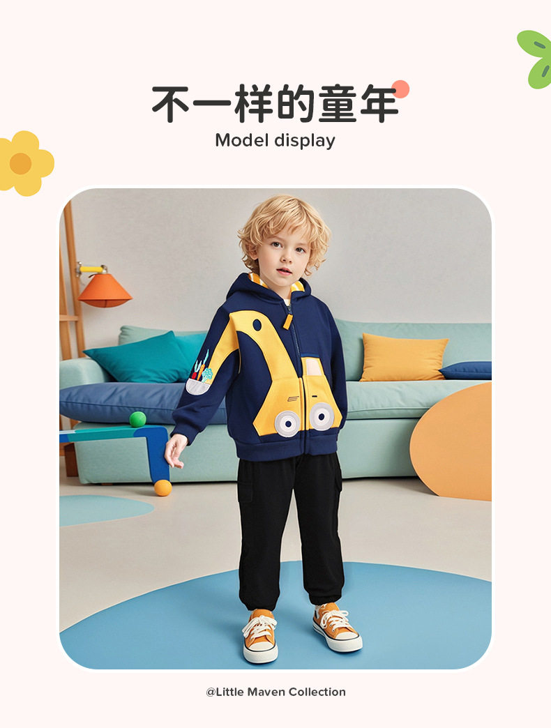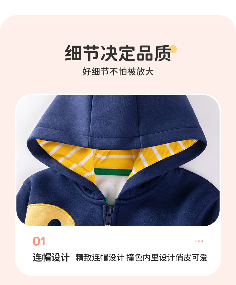 Factory Boys' Hoodie, Autumn Fleece-lined Jacket, Kids' Long-sleeve Warm Top