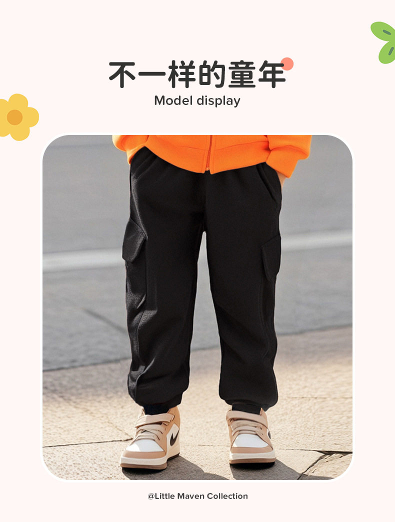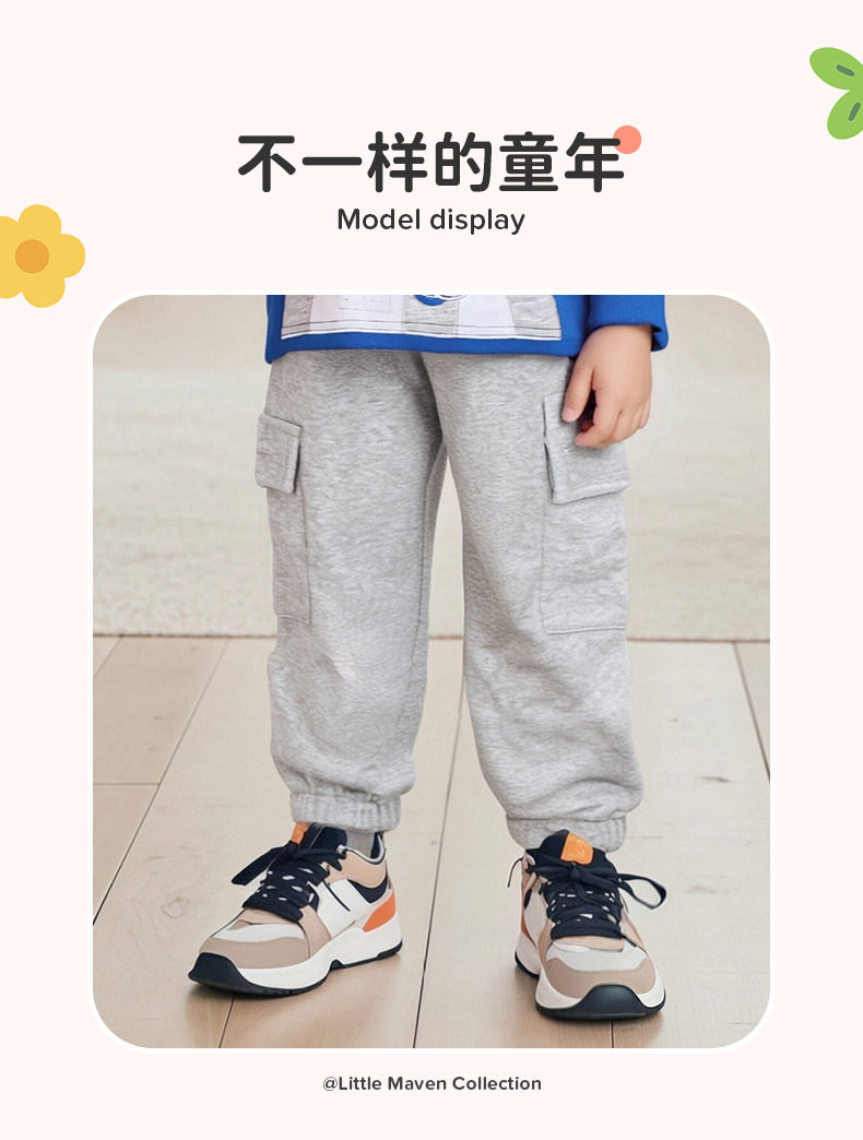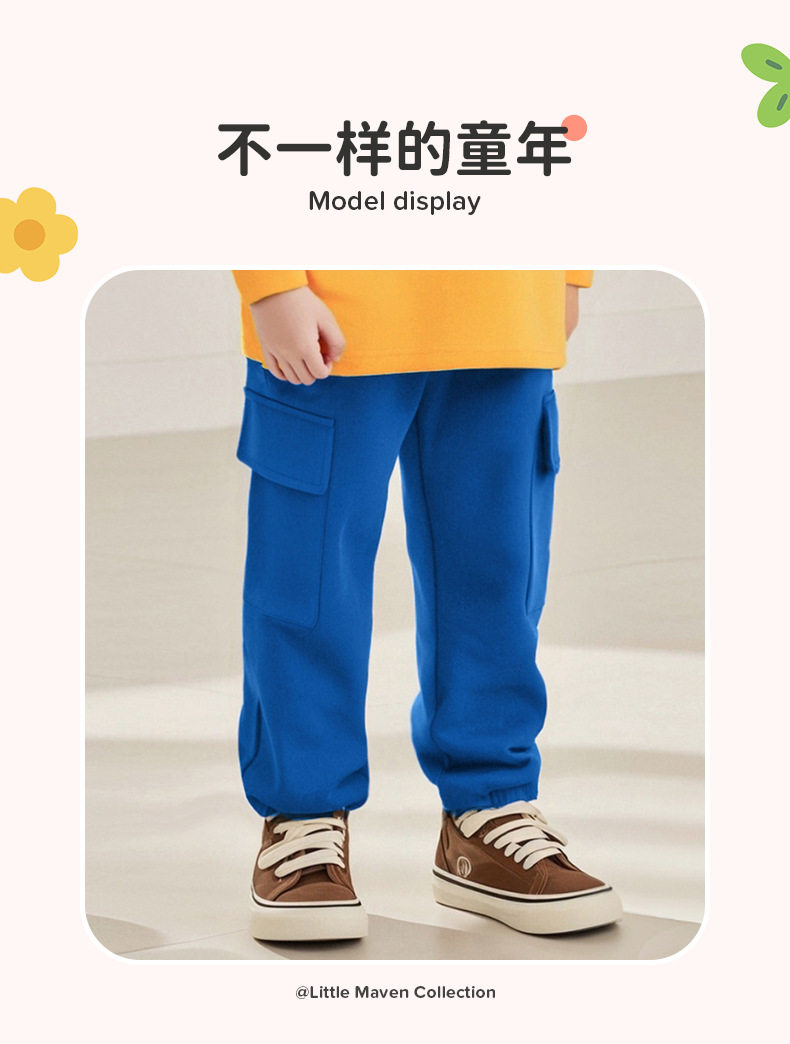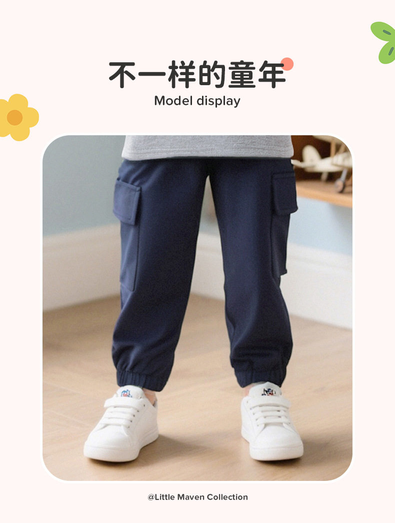 ملابس الأطفال، بنطال شحن للصبي، بنطال أطفال بأسلوب عصري لون متجانس خريفية