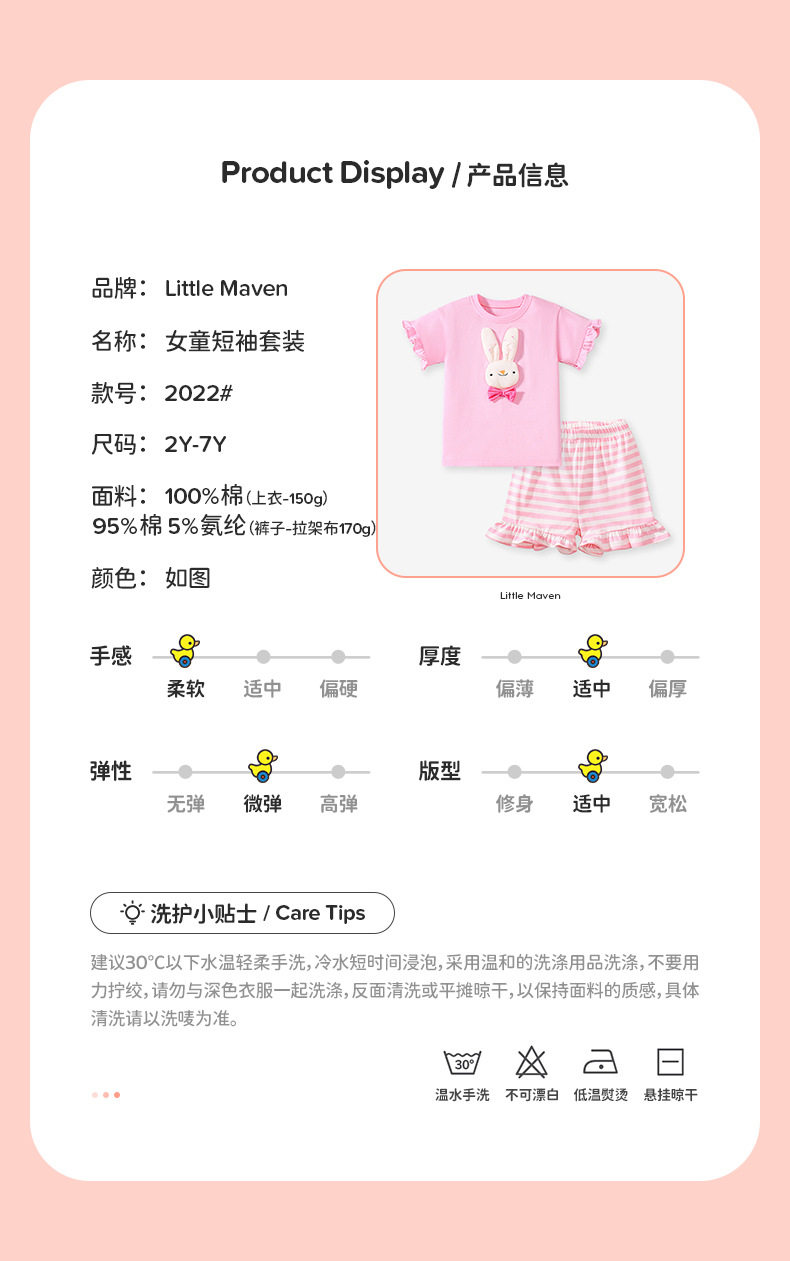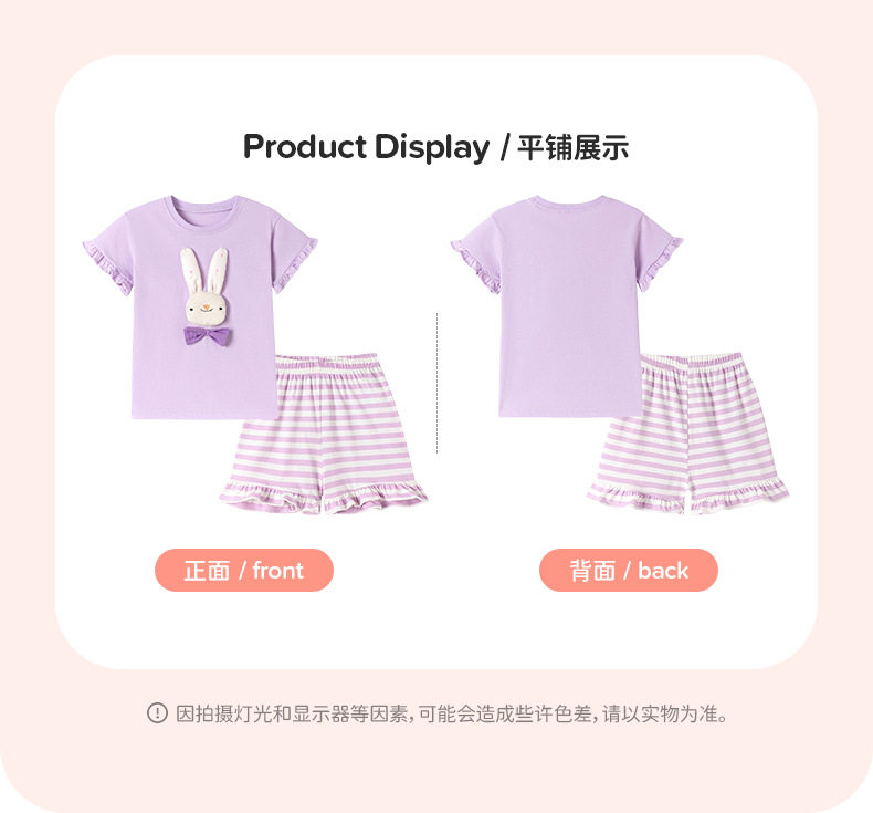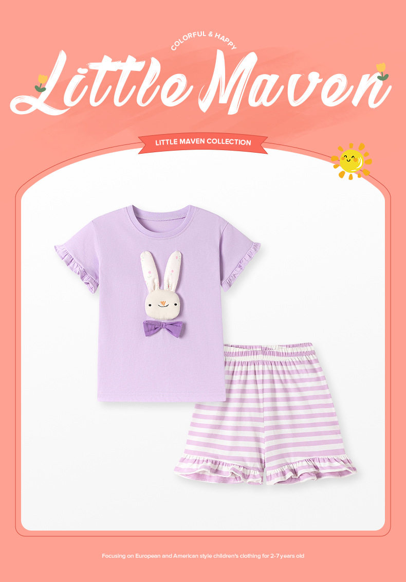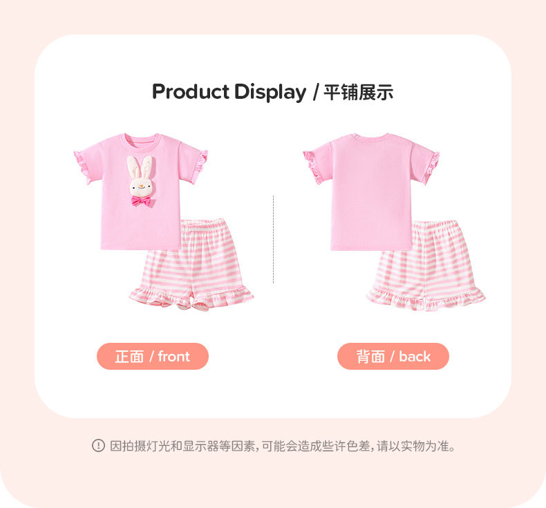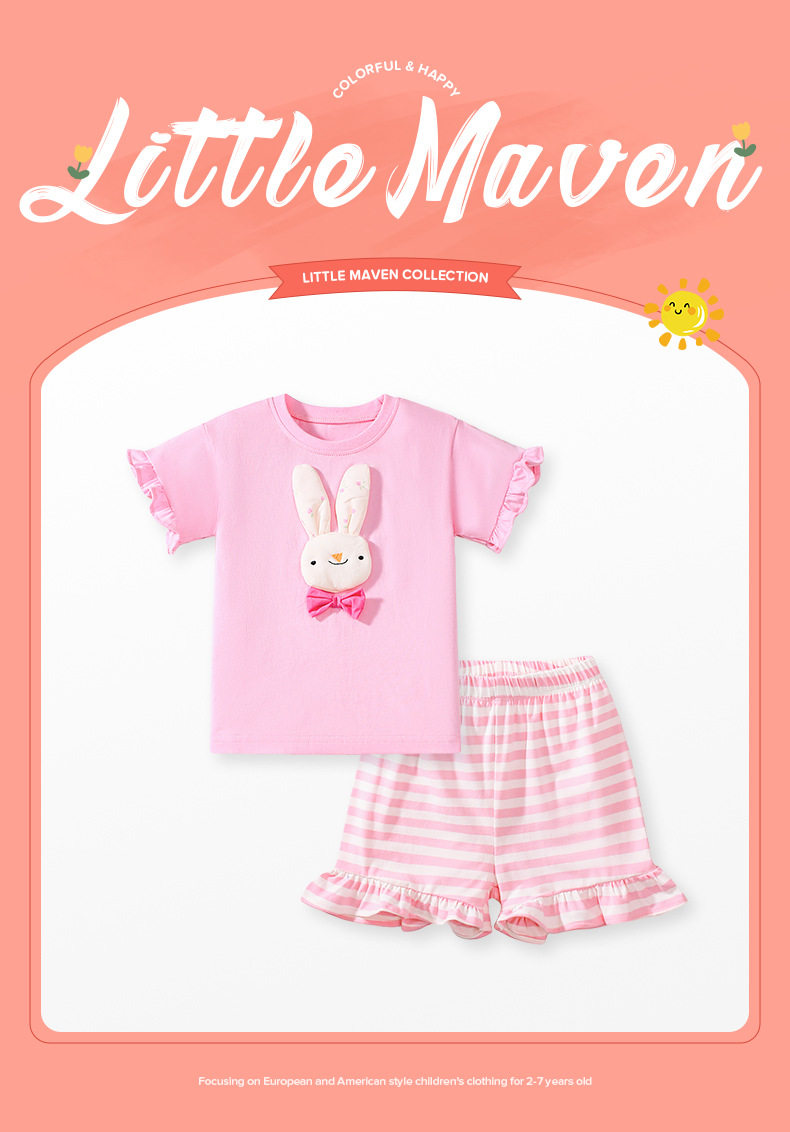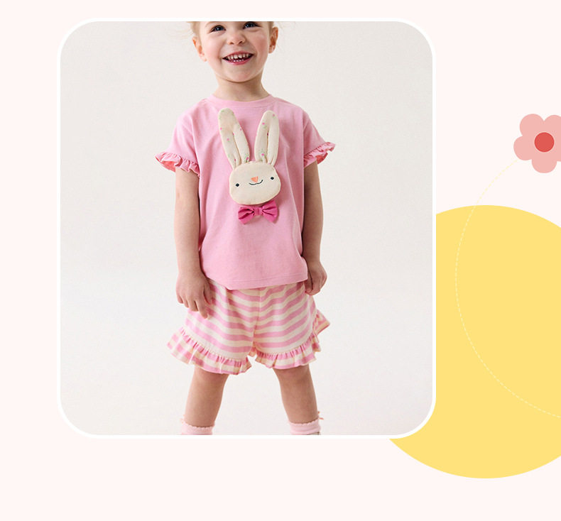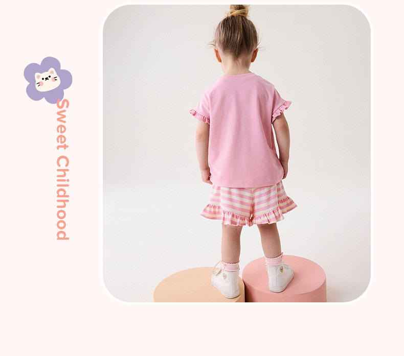 Cute Kids' Set, Summer Short-sleeve Girls' Outfit, Cartoon Striped Children's Clothing Wholesale