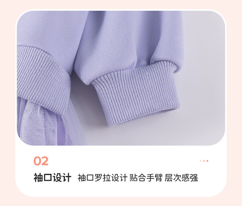 Girls' Cartoon Set, New Autumn Baby Mesh Patchwork Hoodie & Stacked Leggings Two-Piece Outfit