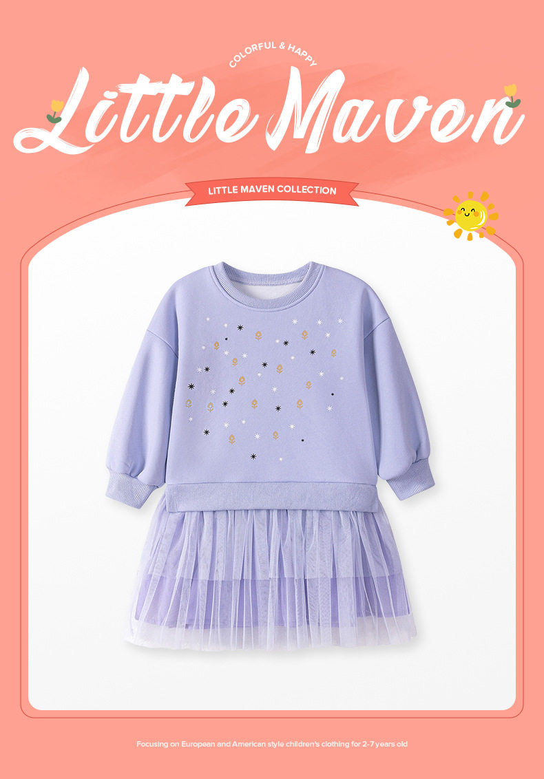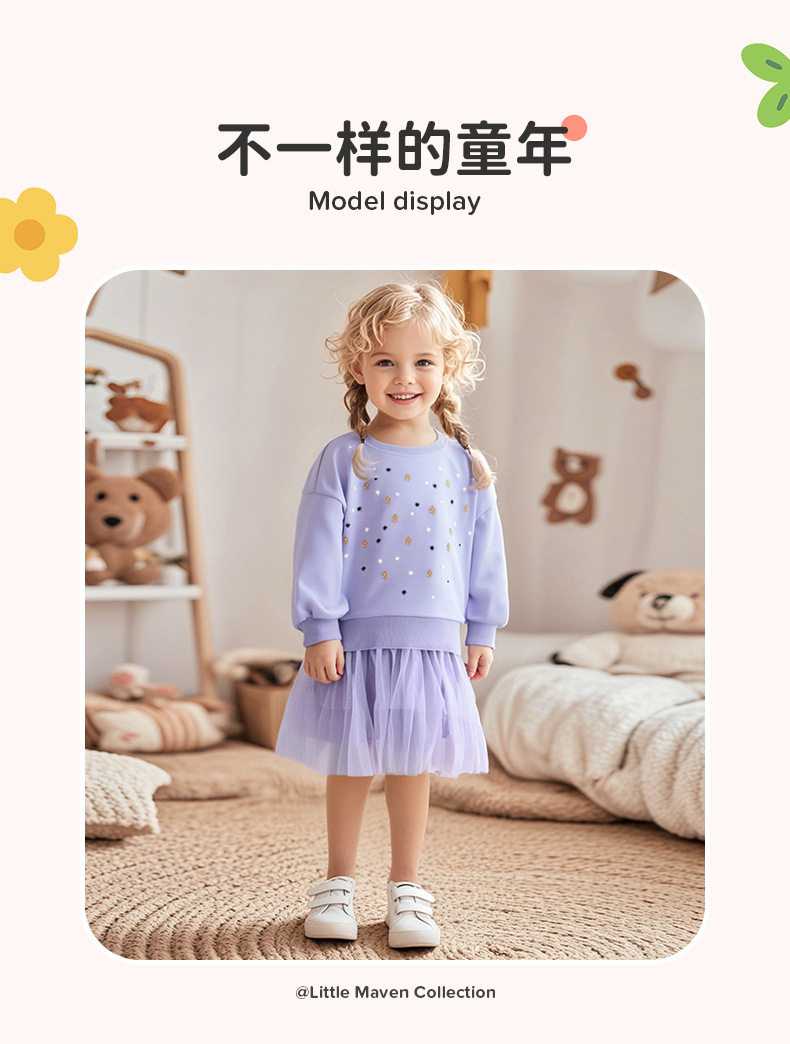 Kids' Dress, Autumn Fleece-lined Girls' Dress, Cute Tulle Kids' Dress