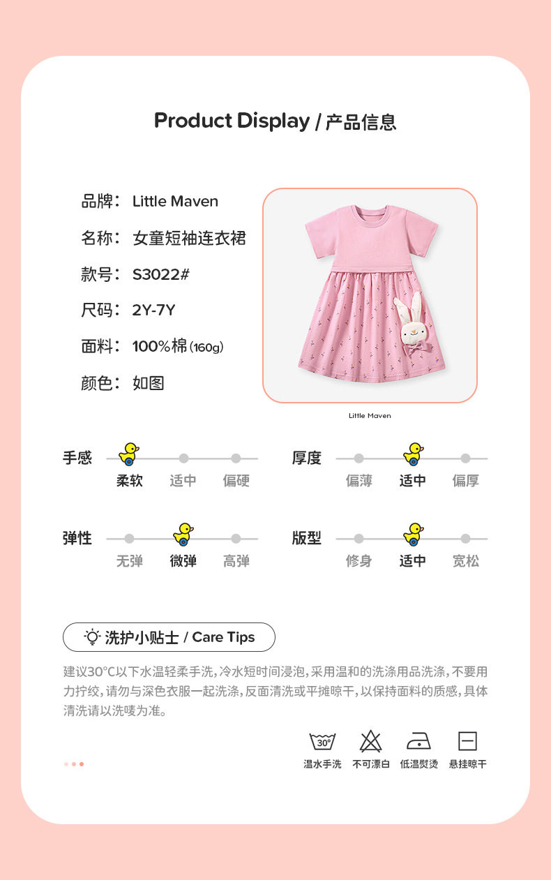 Cute Girls' Dress, New Summer Kids' Dress, Cotton Cartoon Kids' Dress