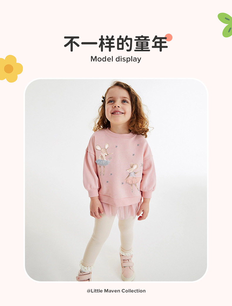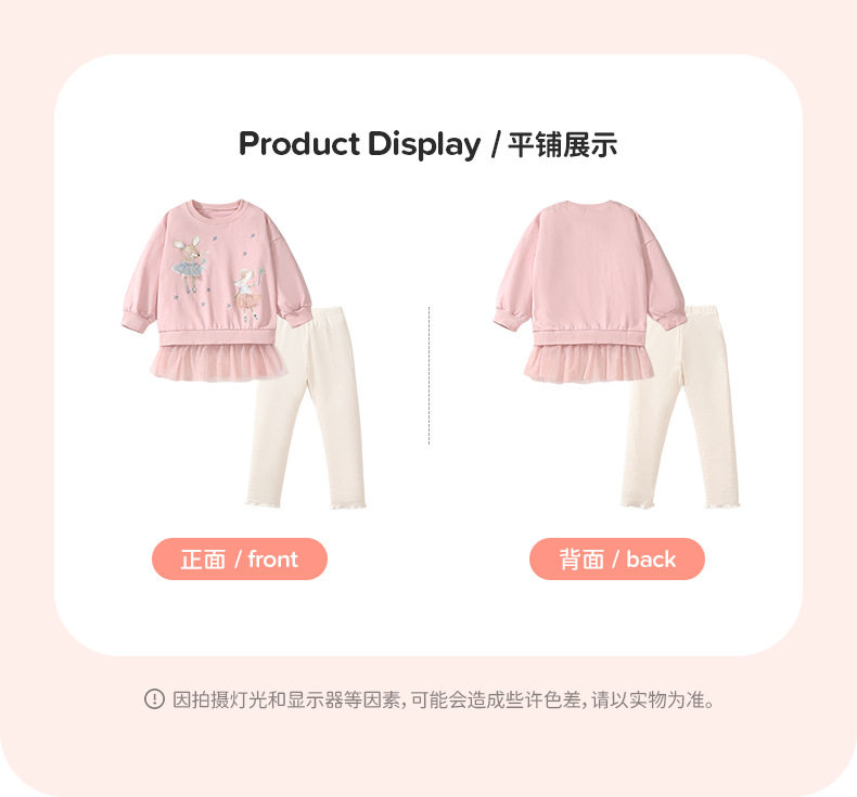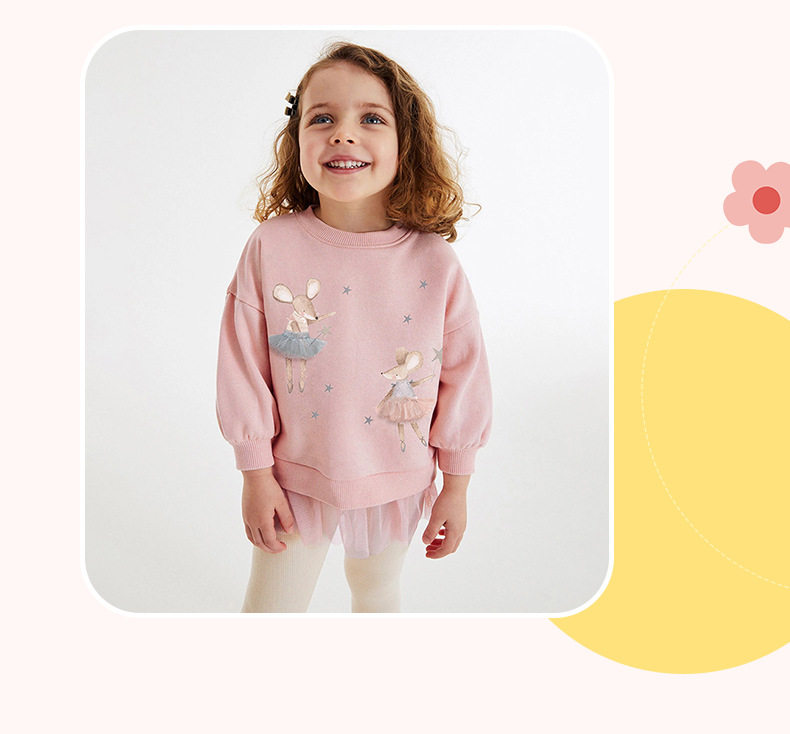 Girls' Cartoon Set, New Autumn Baby Mesh Patchwork Hoodie & Stacked Leggings Two-Piece Outfit