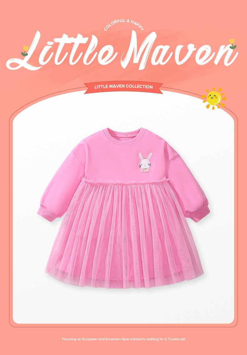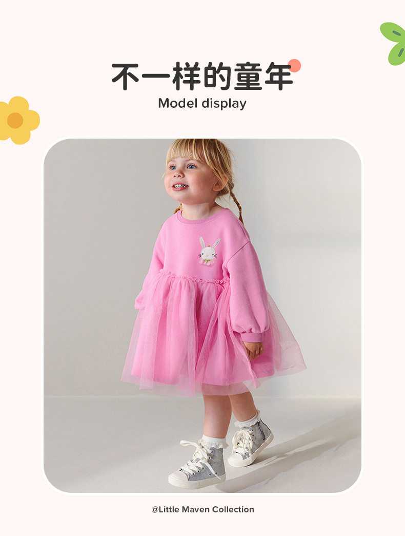 [Style] Girls' Dress, Long-sleeve Tulle Skirt, Autumn Cotton Kids' Princess Dress