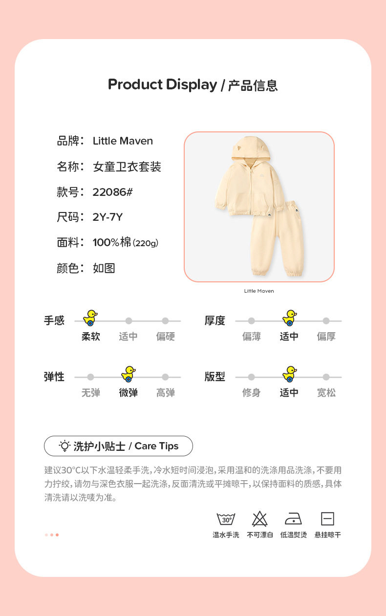 New Girls' Hoodie Set, Fashion Kids' Outfit, Cotton Autumn Long-sleeve Set