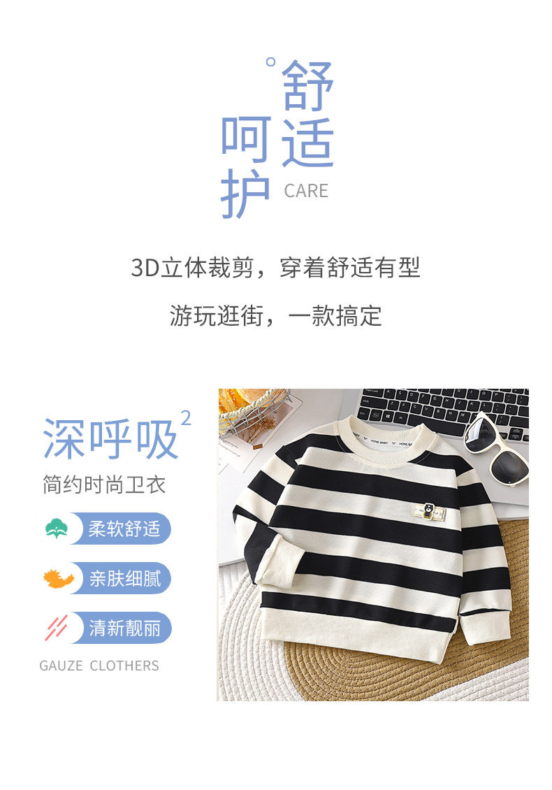 Children's Striped Hoodie, New Spring & Autumn Collection, Boys' Long-Sleeve Pullover, Girls' Casual Outerwear Top