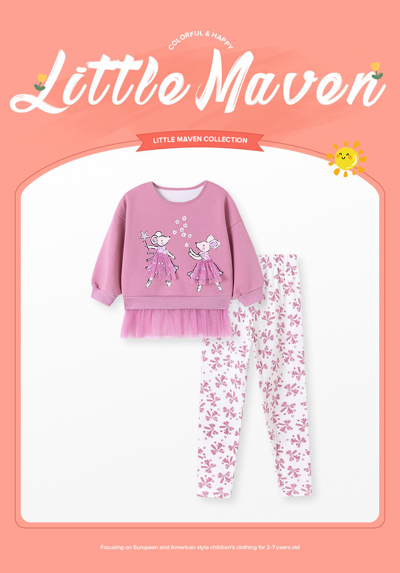 New [Style] Children's Clothing Wholesale, Fall & Winter Cute Girls' Set, Fleece-lined Cartoon Kids' Outfit