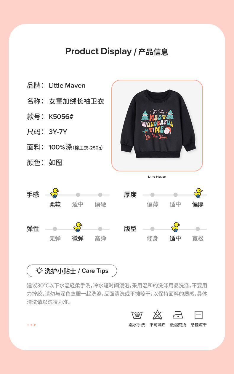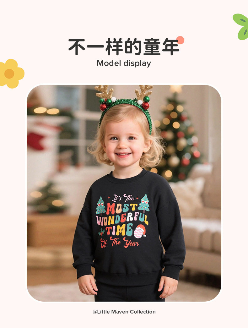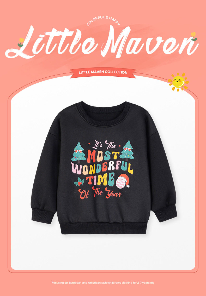 Christmas Girls' Top, Autumn Long-sleeve Kids' Hoodie, Fleece-lined Girls' Hoodie
