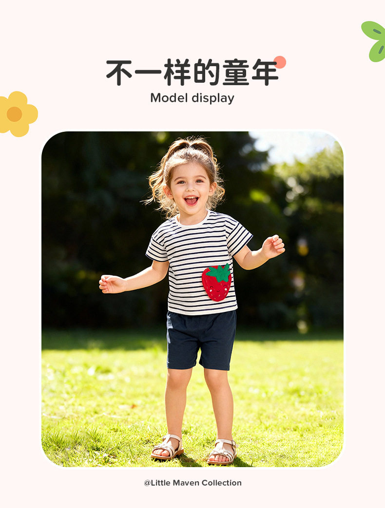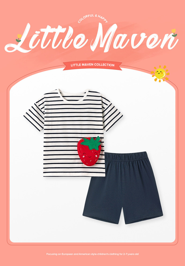 Set Anak Perempuan Lengan Pendek Musim Panas, Setelan Dua Pcs Bayi Bergaris Lucu, Setelan Anak