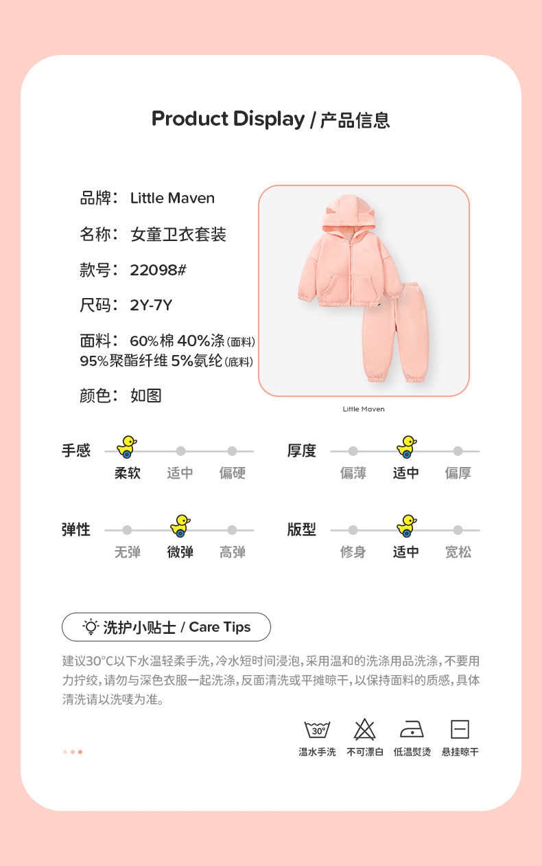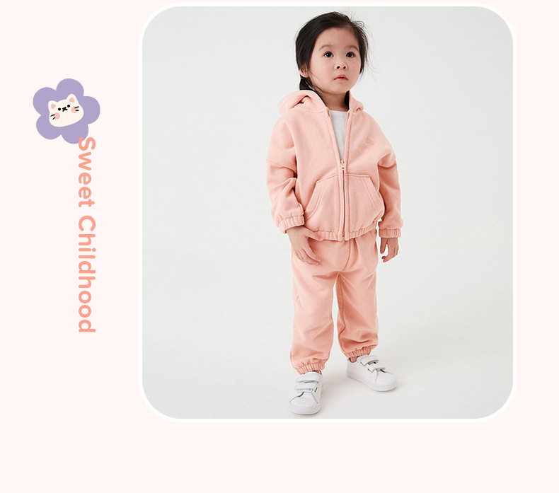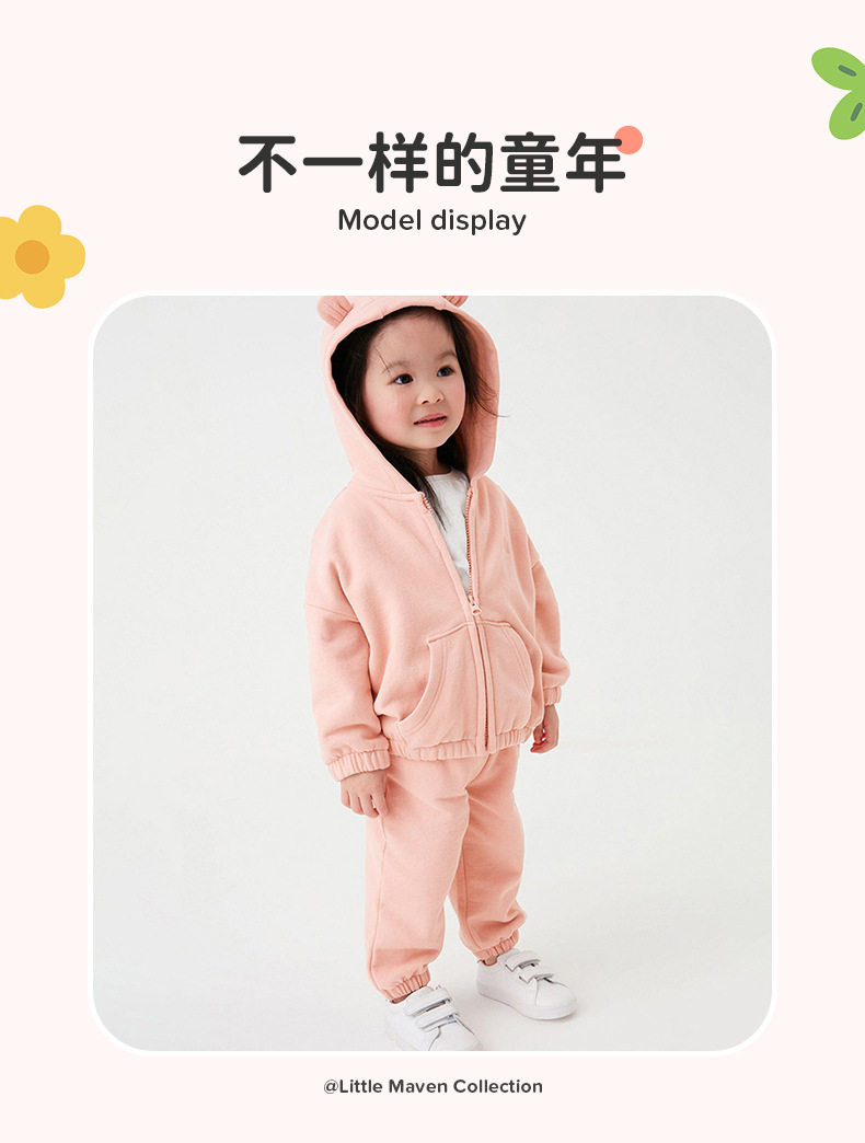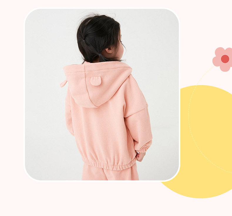 Girls' Hoodie Set, Autumn Fleece-lined Kids' Outfit, Cute Children's Clothing Girls' Set