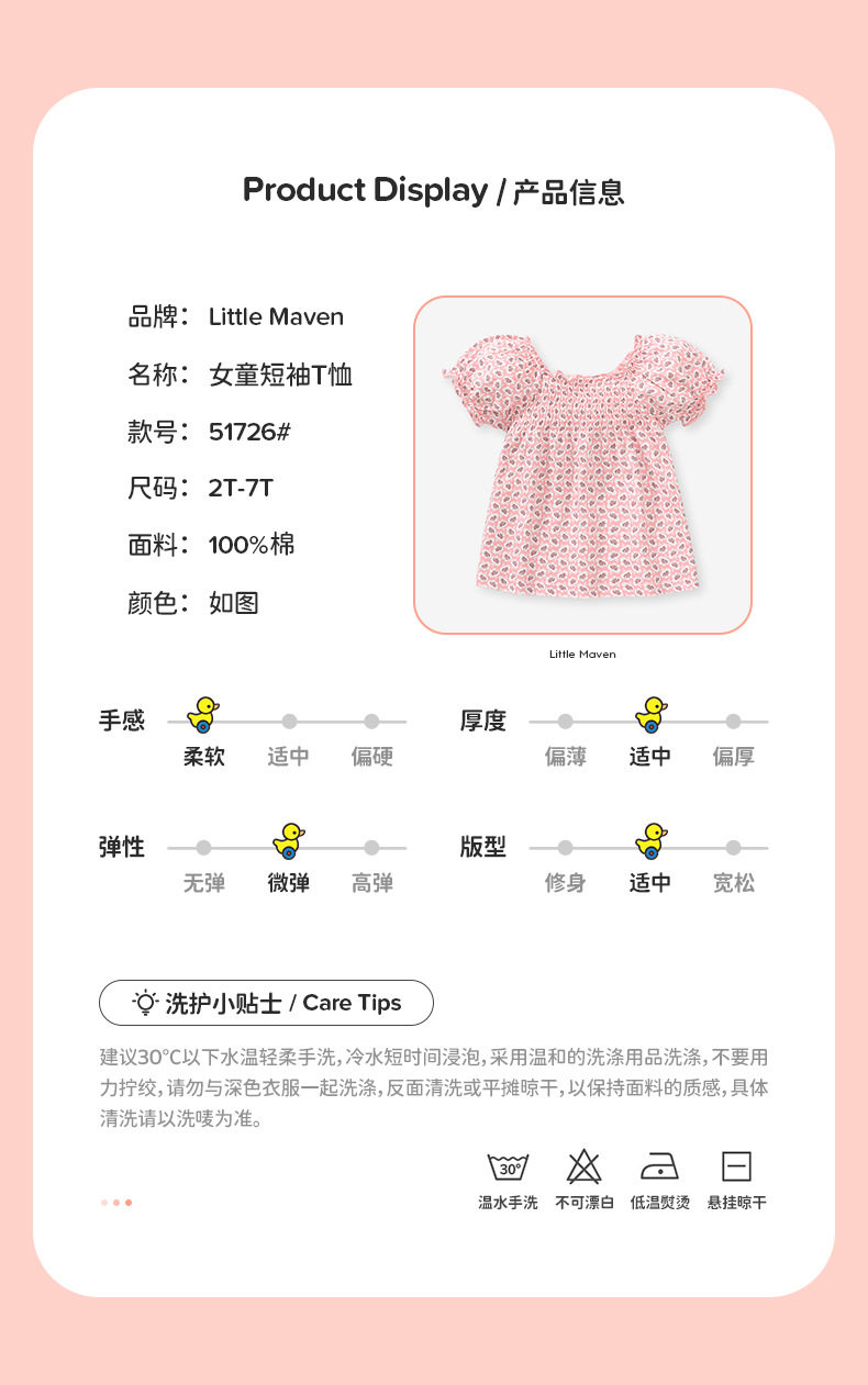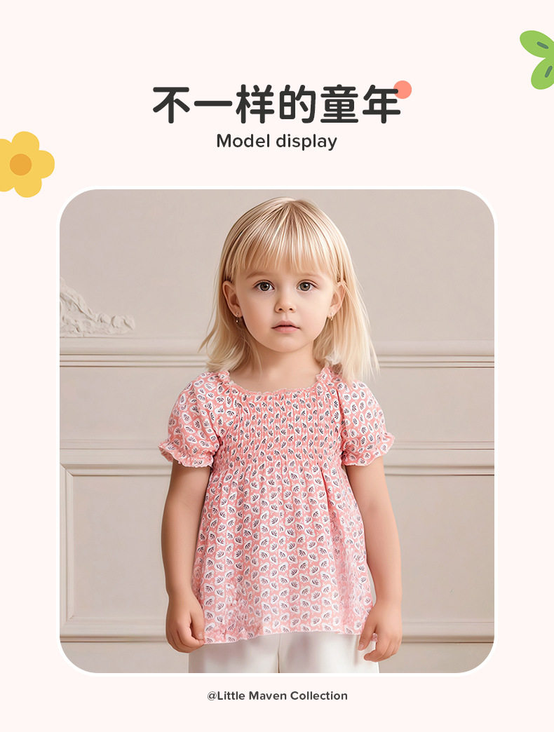 Girls' Summer Short-Sleeve T-Shirt Wholesale from Factory, Style Baby Top, Cartoon Cute Kids' Tee