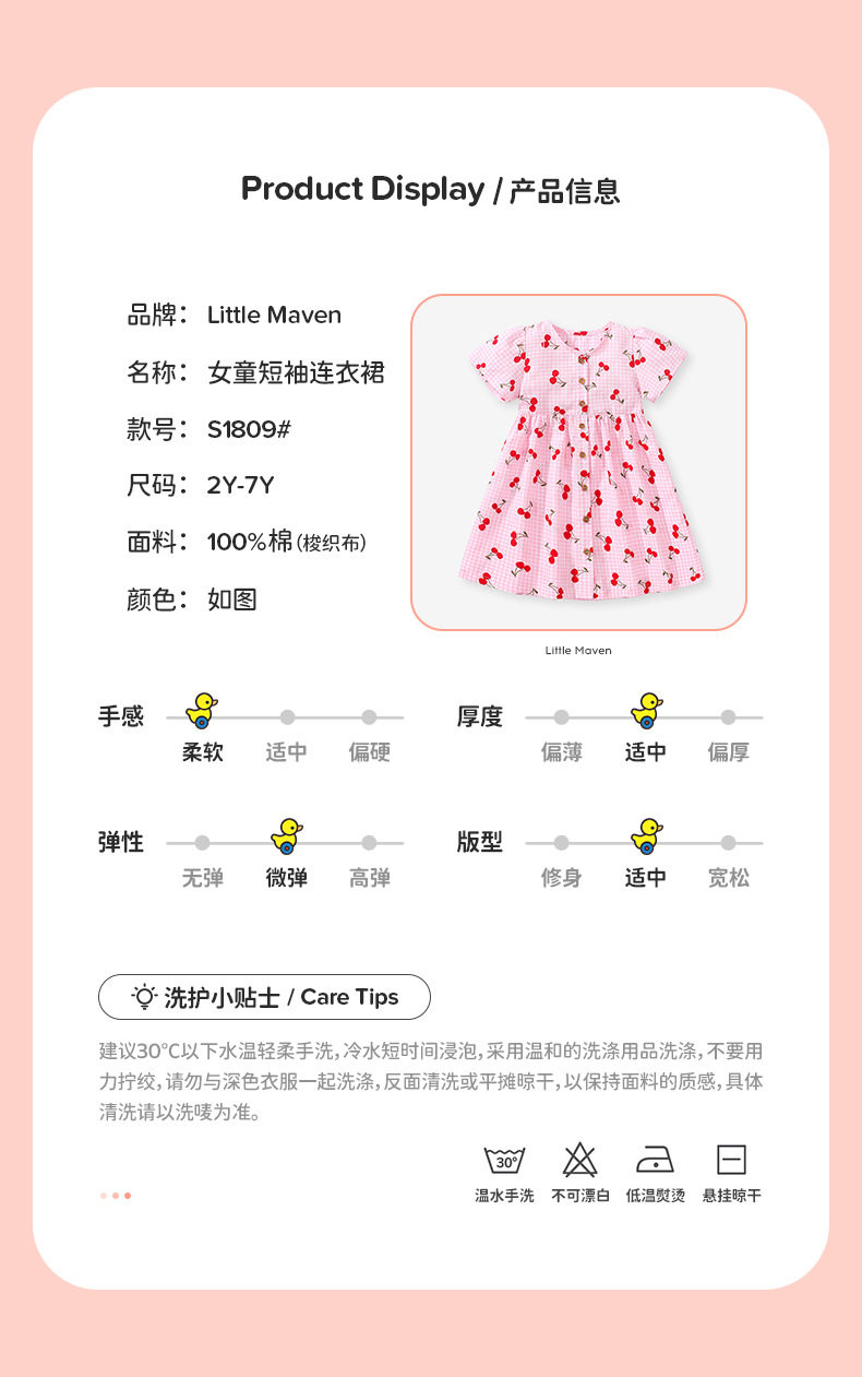 Girls' Dress, Summer Cotton Kids' Princess Dress, Cute Baby Girls' Casual Skirt