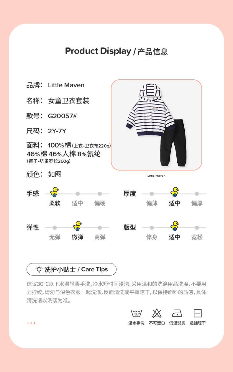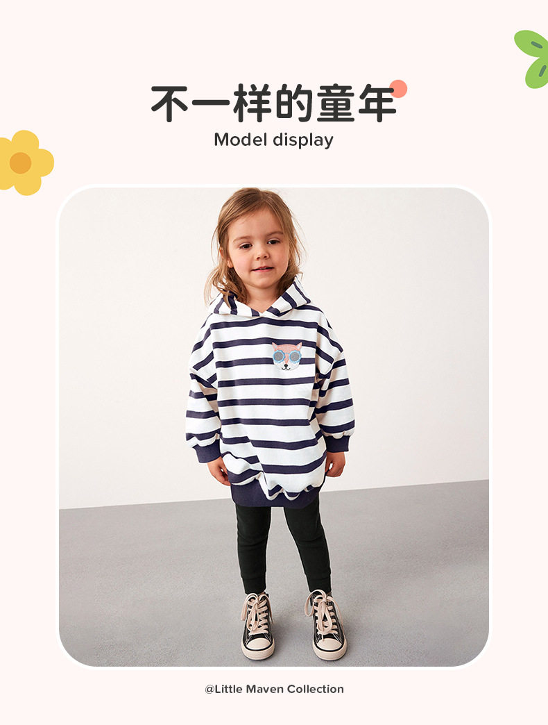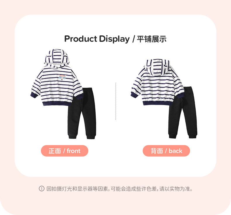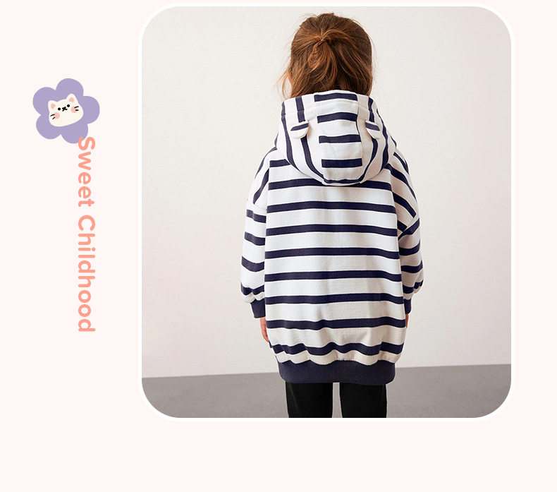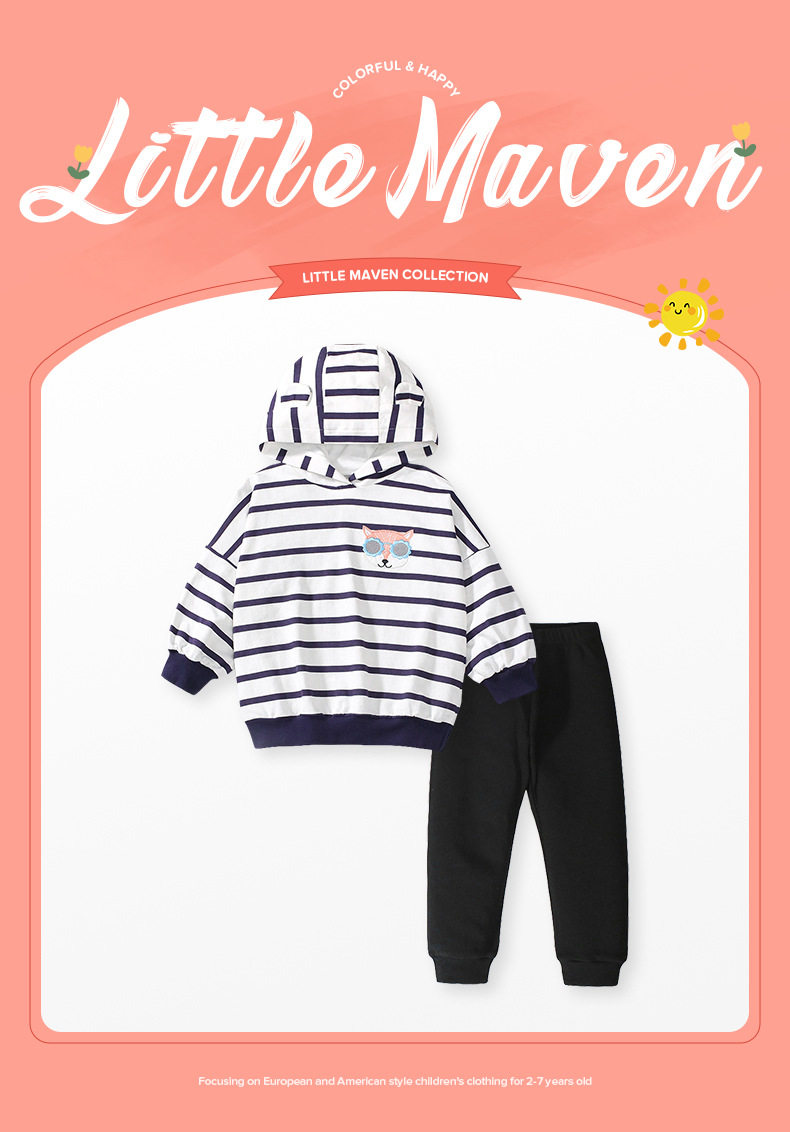 Autumn Long-sleeve Girls' Set, Striped Hooded Kids' Outfit, Girls' 2-piece Set