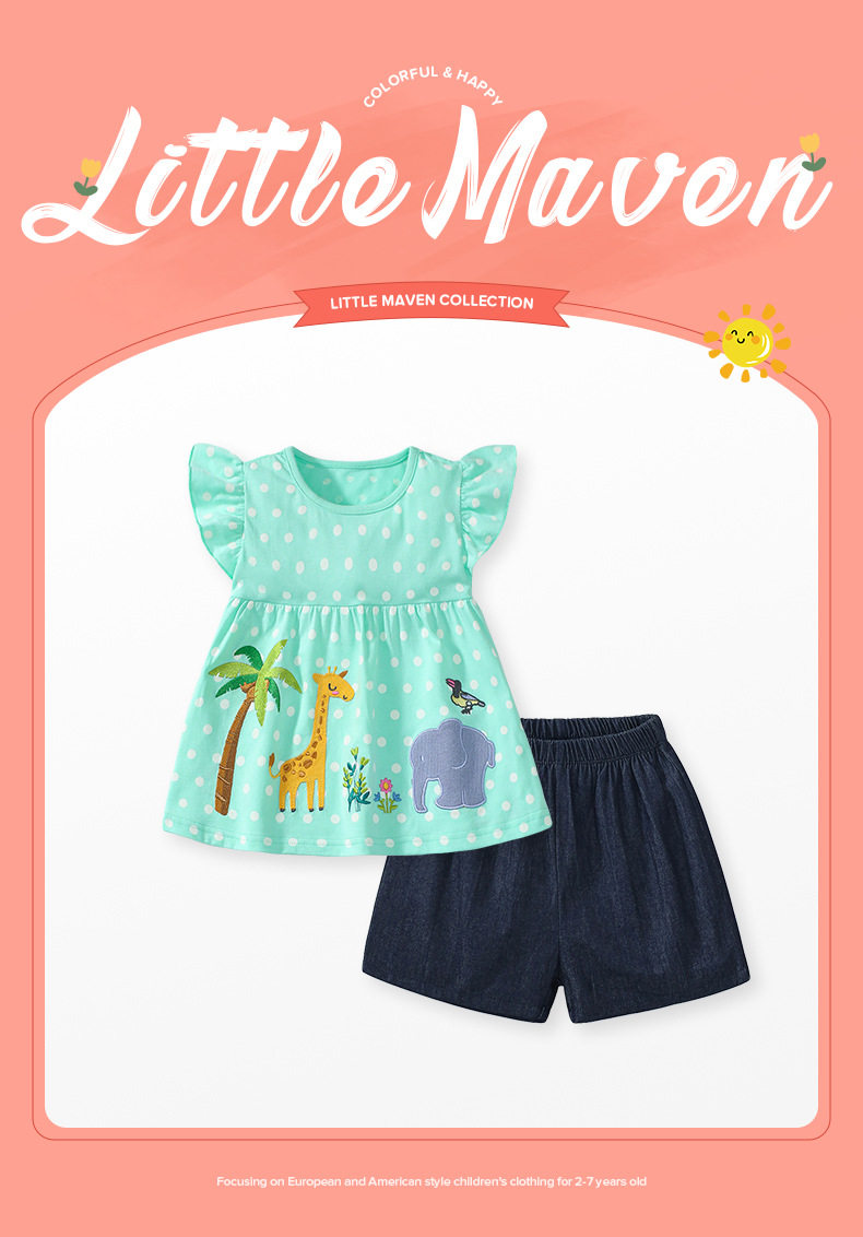 2024 Summer Girls' Set, Cotton Short-sleeve & Shorts Kids' 2-piece Outfit