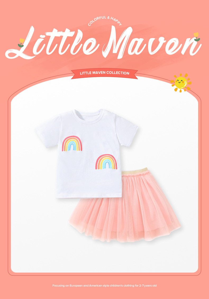 Custom Girls' Set, Summer Short-sleeve Tulle Dress 2-piece Outfit, Cute Kids' Set