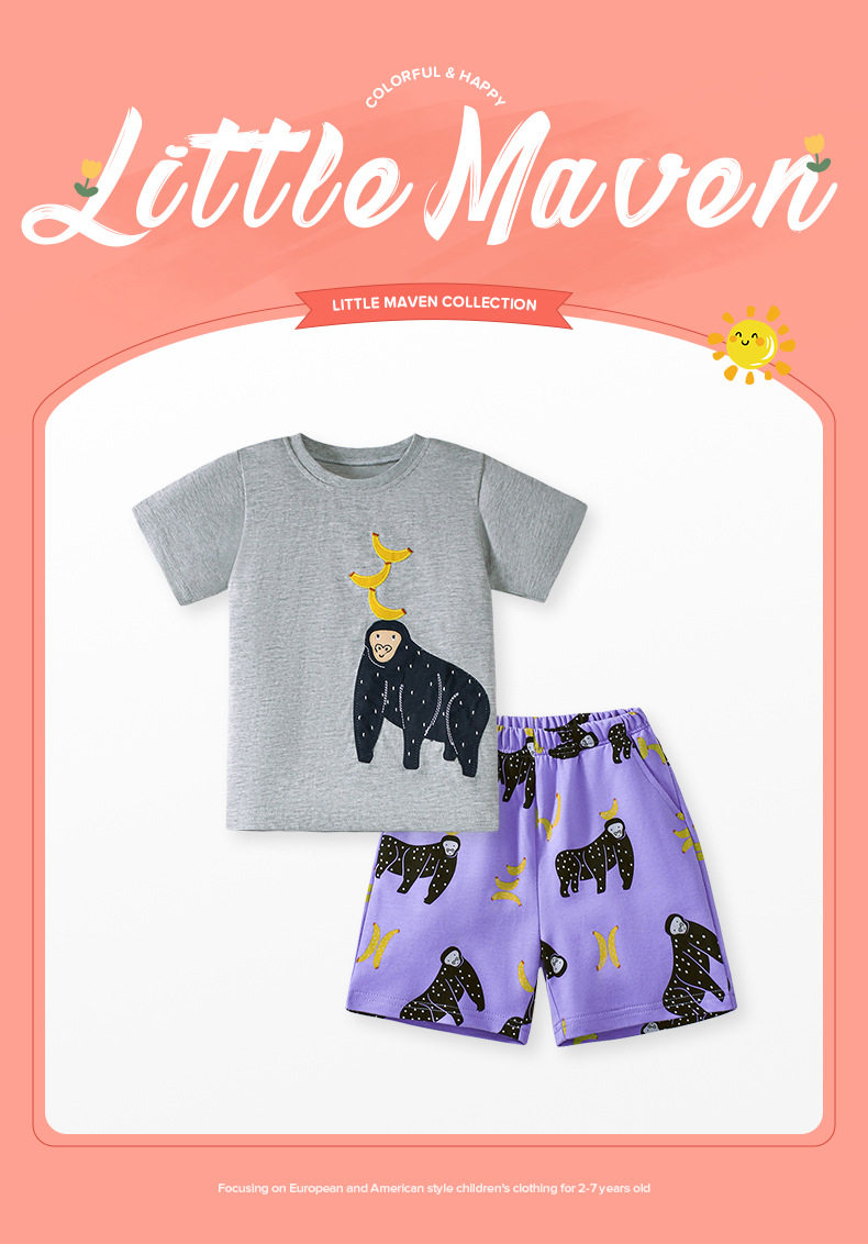 Source Children's Clothing Factory Direct Supply, Girls' Short-sleeve Set, Summer Cartoon Applique Kids' Outfit