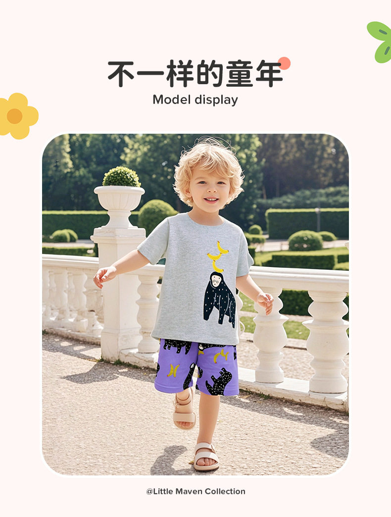 Custom Summer Short-sleeve Boys' 2-piece Set, Kids' Cotton Outfit, Toddler & Kids' Sportswear
