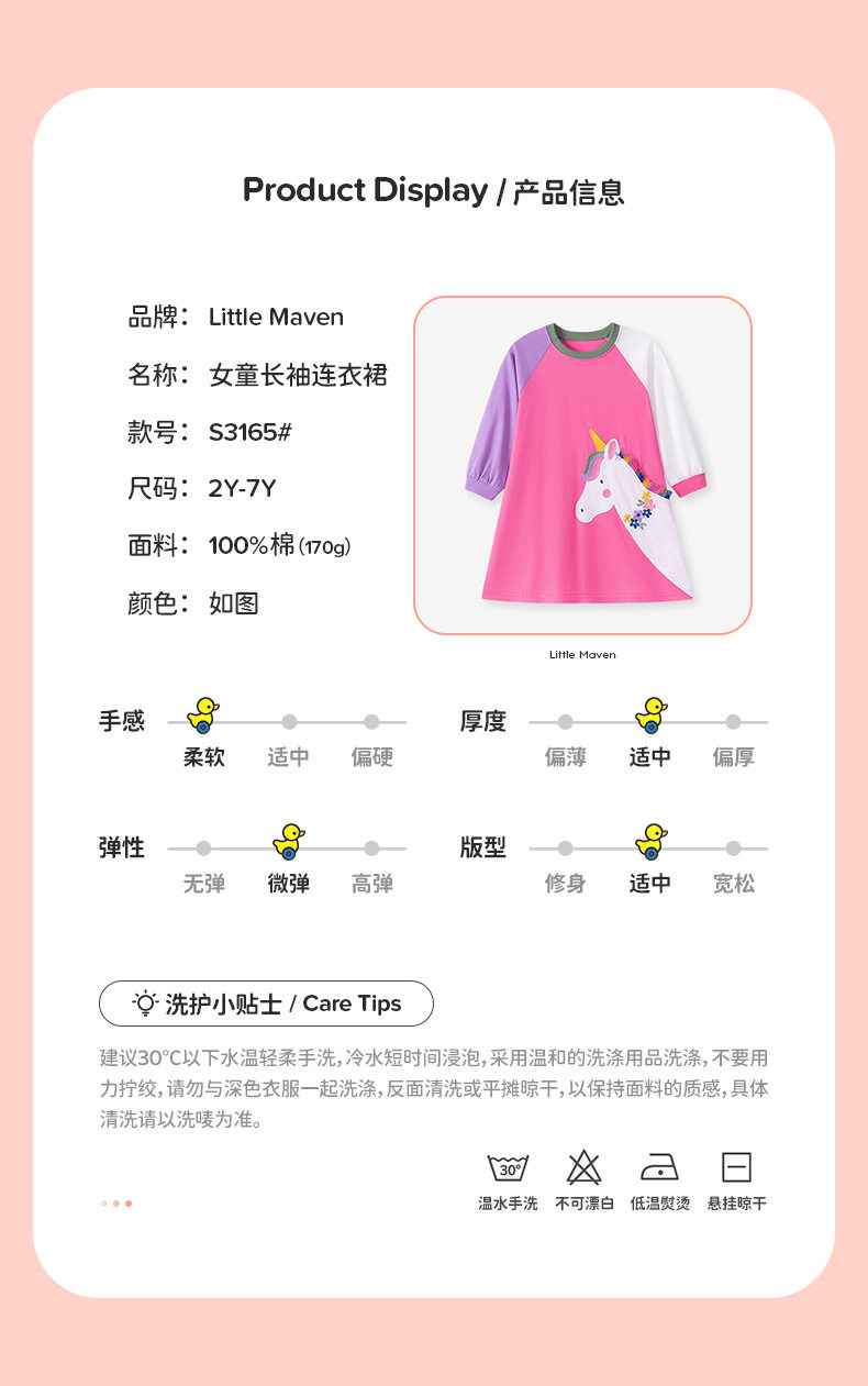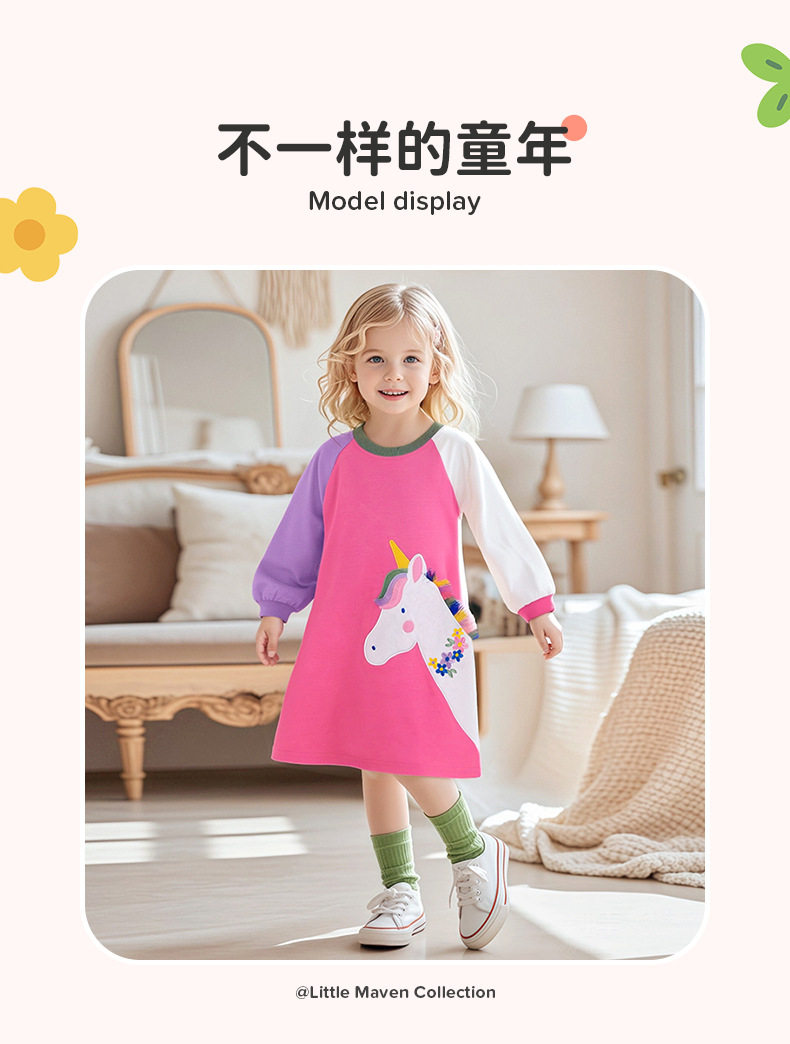 Custom-made Kids' Dress Wholesale, Autumn Long-sleeve Girls' Dress, Cartoon Cotton Kids' Dress
