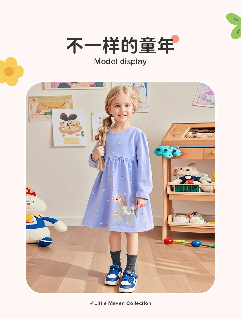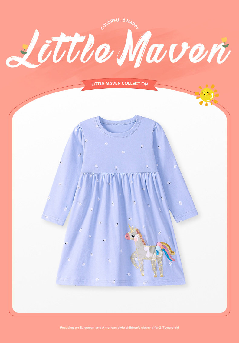 New Kids' Dress Wholesale, Cartoon Long-sleeve Girls' Dress, Autumn Cute Kids' Skirt