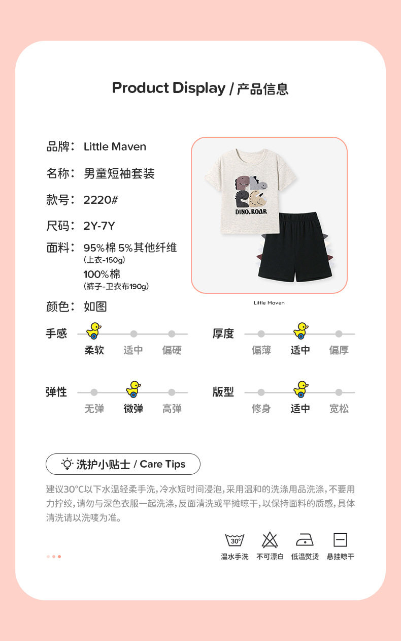 Summer Boys' Set, Fashion Cartoon Kids' 2-piece Outfit, Short-sleeve Baby Set