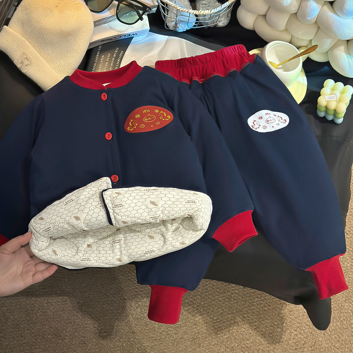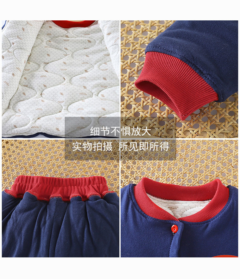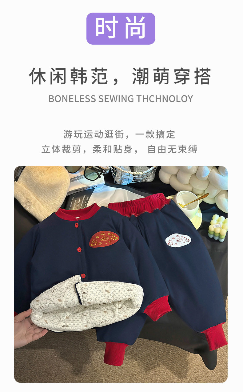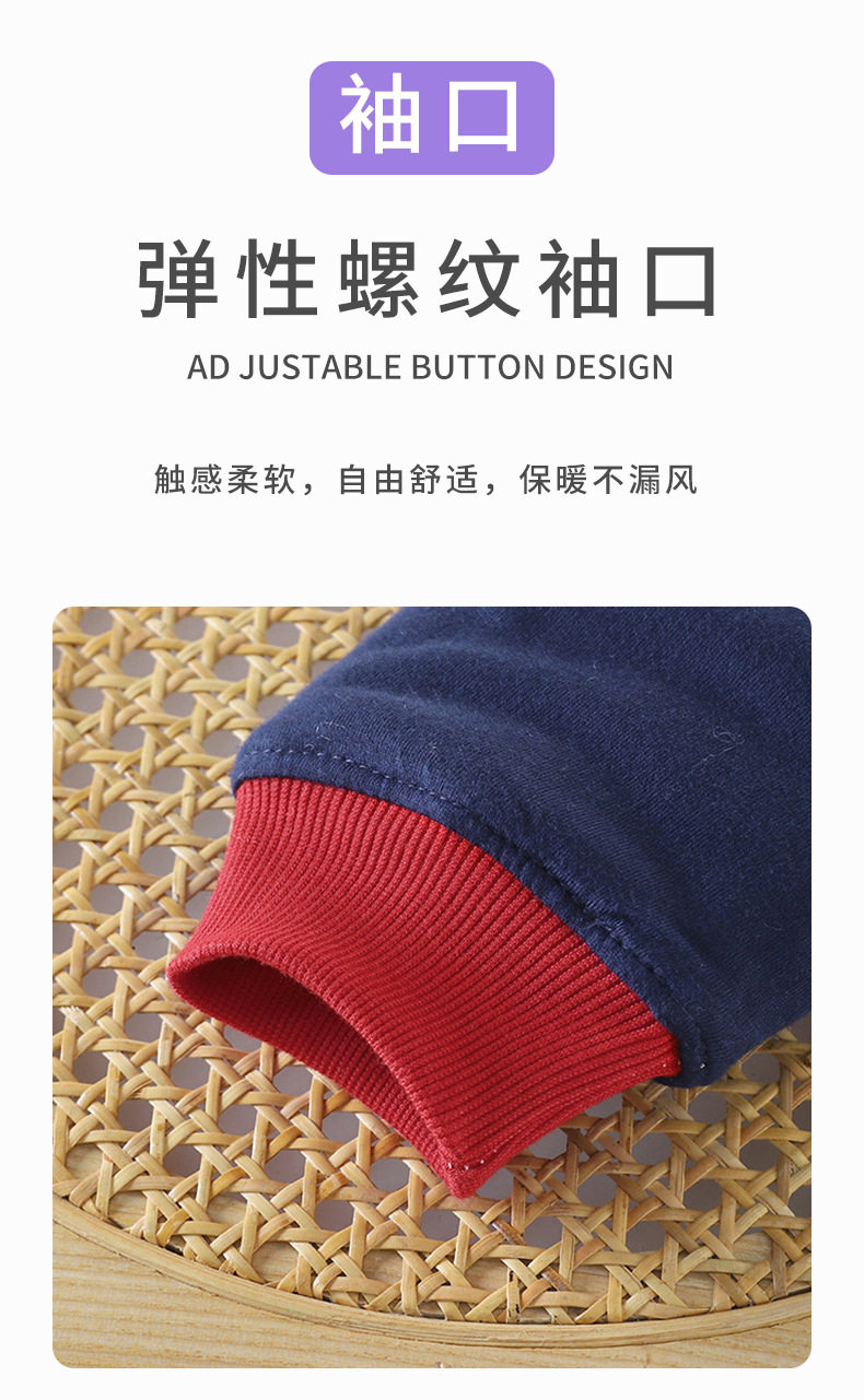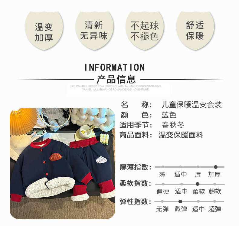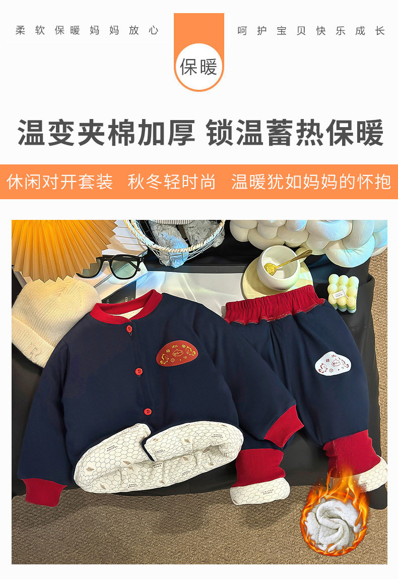 Children's Color-Block Padded Loungewear, Boys & Girls Thickened Cardigan Cotton Jacket, Winter Thermal Three-Layer Padded Temperature-Sensing Set